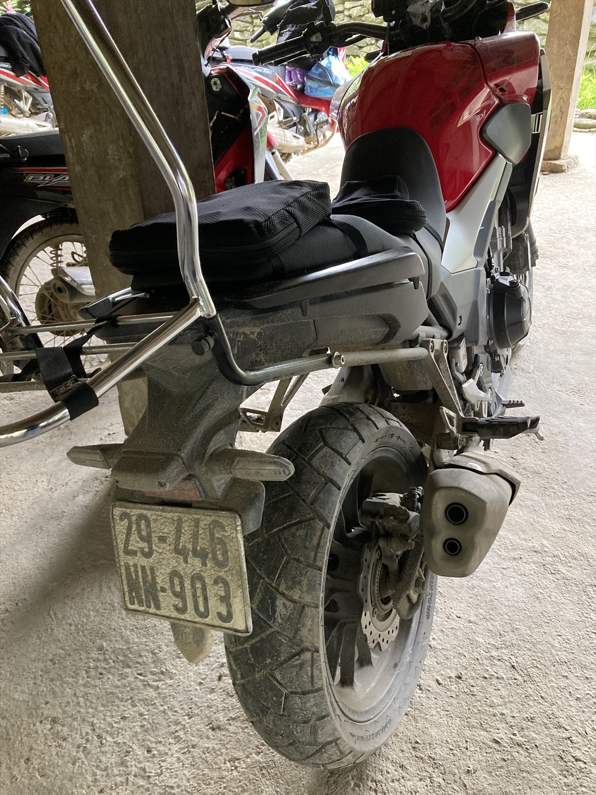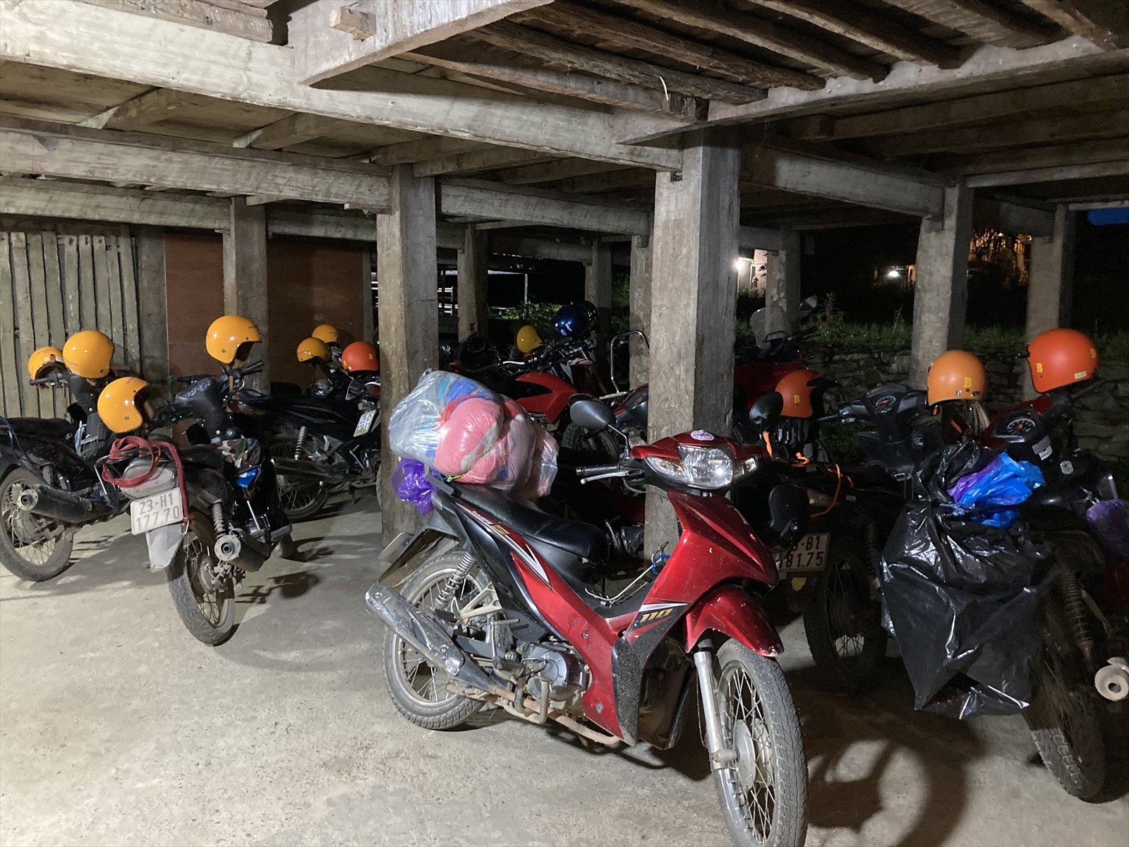 | 戻ってきたら、ツアーのたくさんのバイクが来ていました。夕食は、 Ho Chi MinhからきたFurance人カップルと一緒でした。 |
