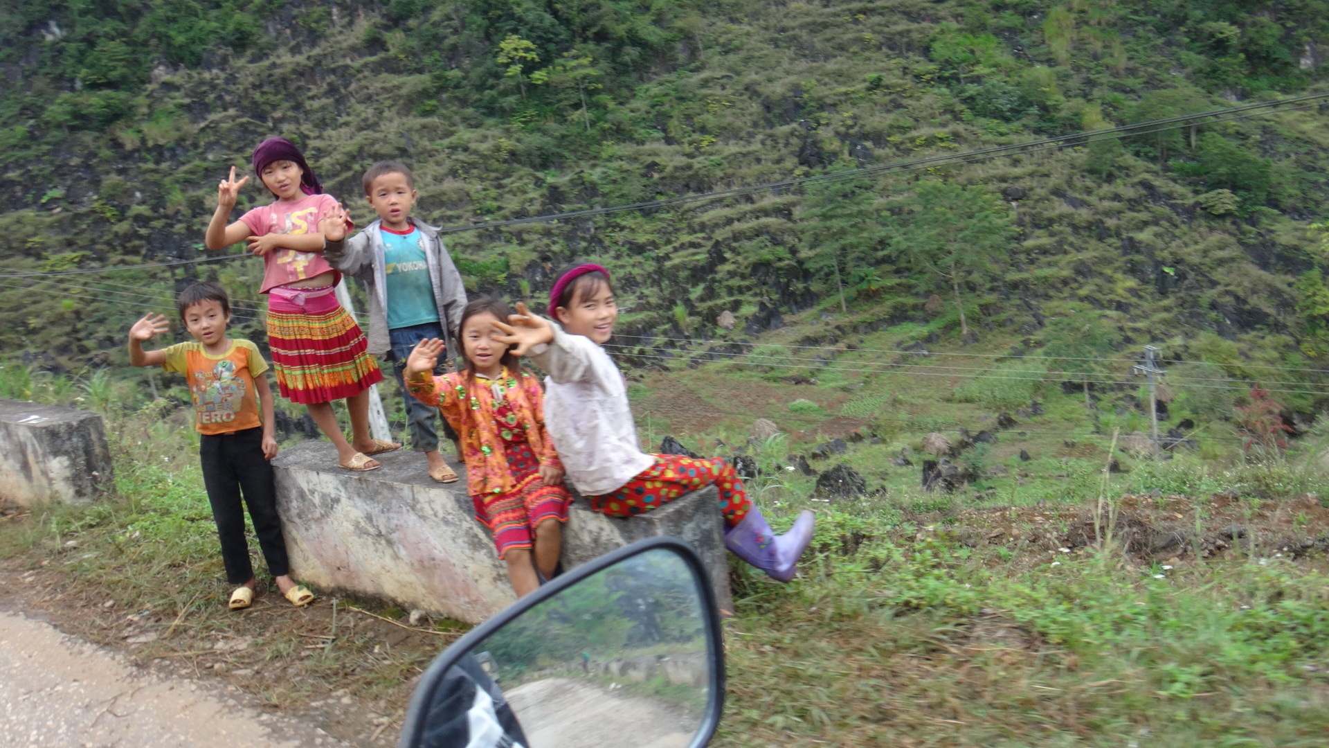 | 峠を登ったり降りたり、トンネルが少ないヴェトナムだけに道は楽しい。子供たちはみんな手を振ってくれるが、もしかしたら何かもらえると思っているのかもしれない。 |