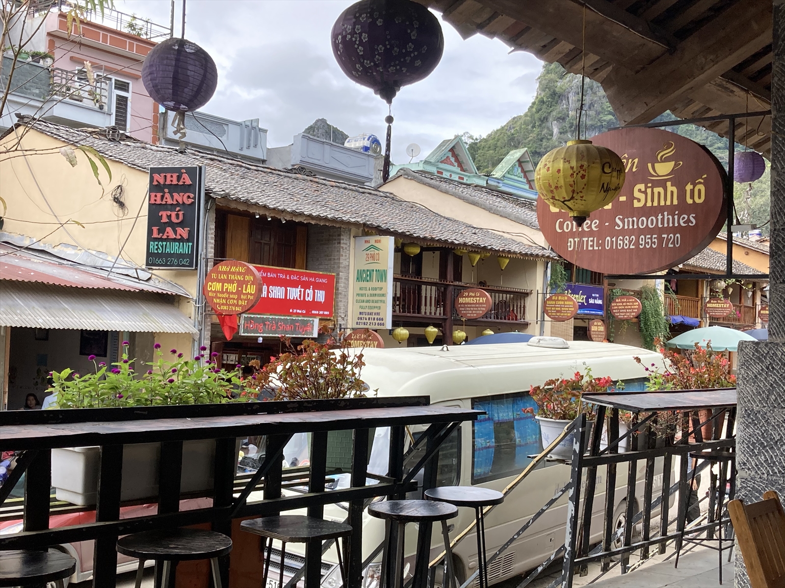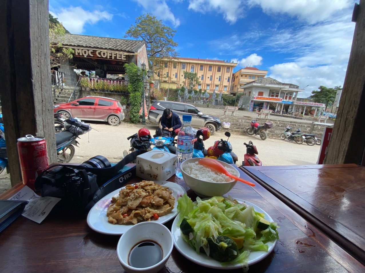 | Dong Vanに到着。昼飯、休憩するところもなく走っていたのでコーヒーを飲んでのんびりする。 |