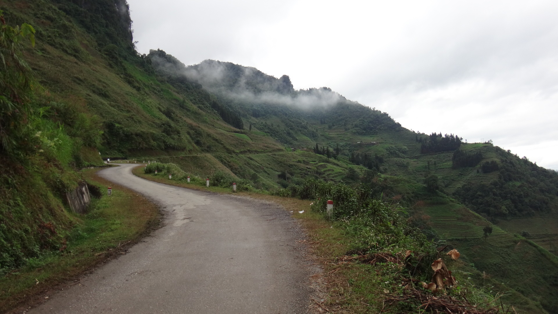 | 昨日見た山肌をかけ上がる道、景色はまるでMa Pi Lengのようだ。素晴らしすぎる。走行中の動画はこちら |