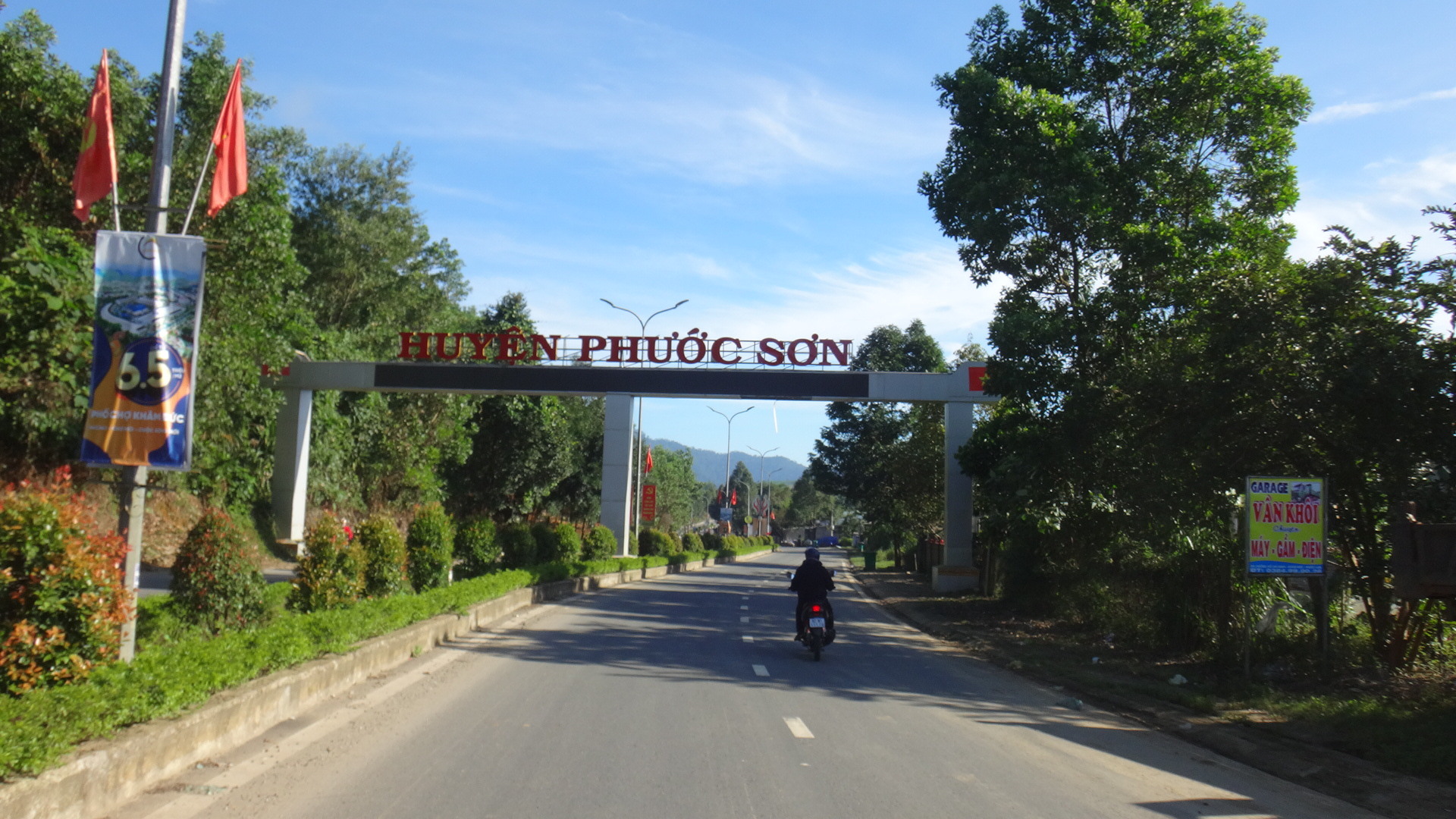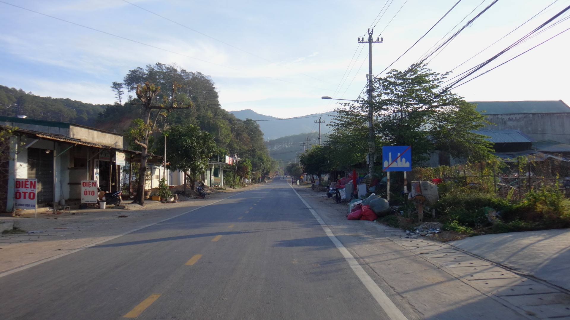 | 交通量がとても少ない素晴らしい峠道だが、コーナーにはタイヤで作ったガードがありサーキットのようにも見える。そして危険な坂道ローギアを使えの看板面白すぎる。走行中の動画 Phuoc Son こんな小さな集落でも街の看板と中央分離帯のある立派な道路がある。本当にに必要なの? |