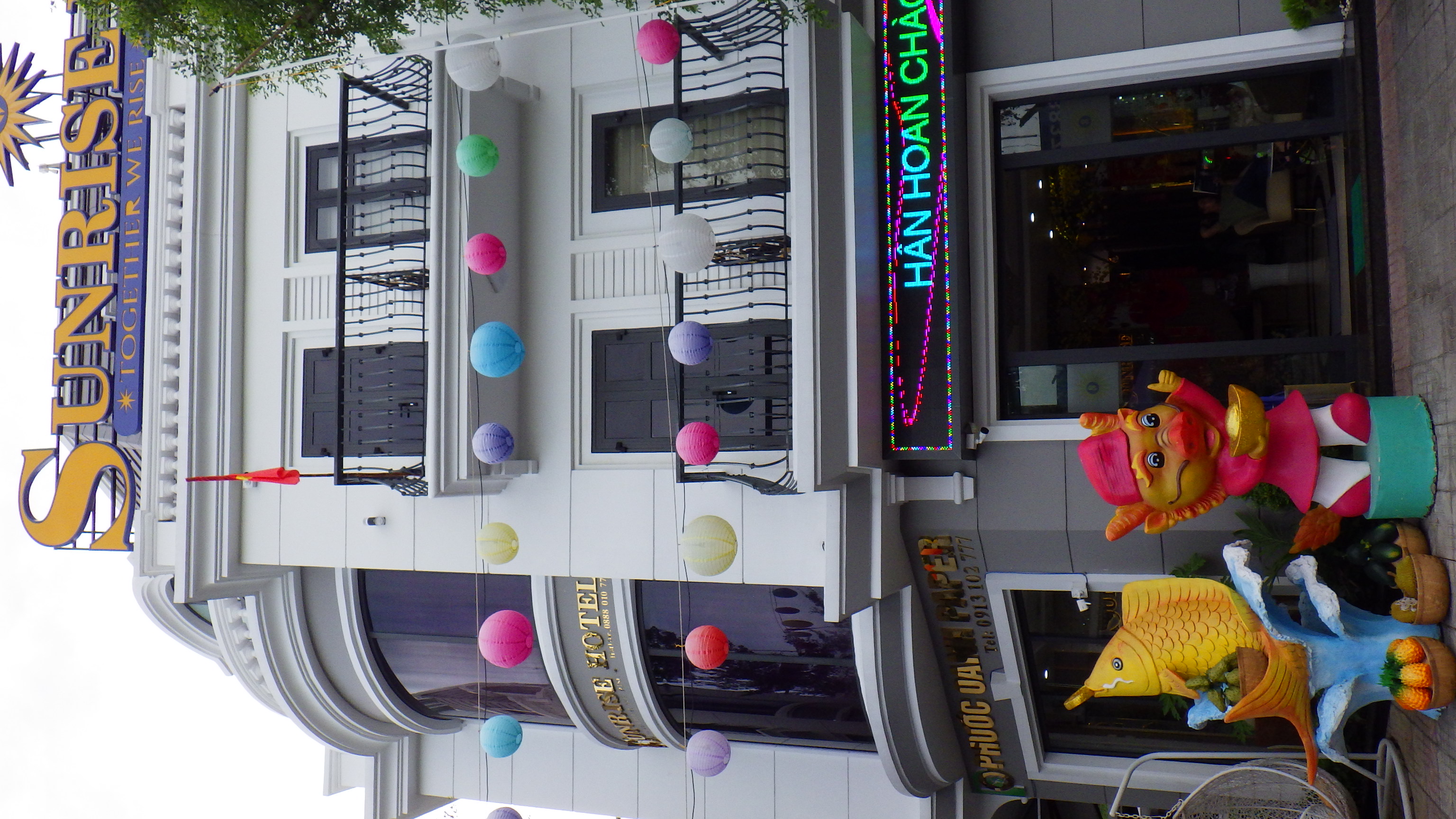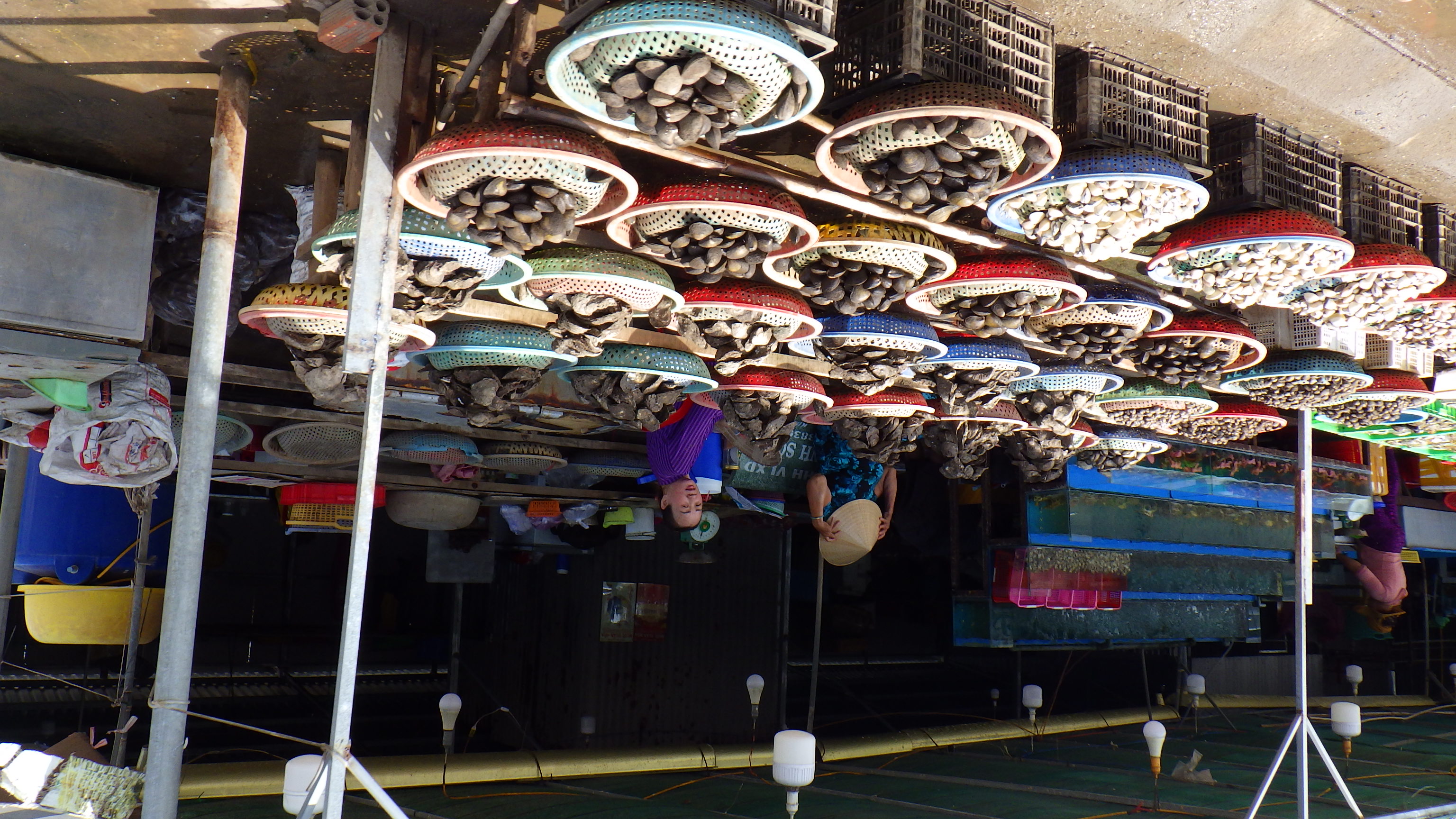 | 海岸線を離れホテルに向かうDT913沿いには海産物の土産屋が立ち並ぶ。 |