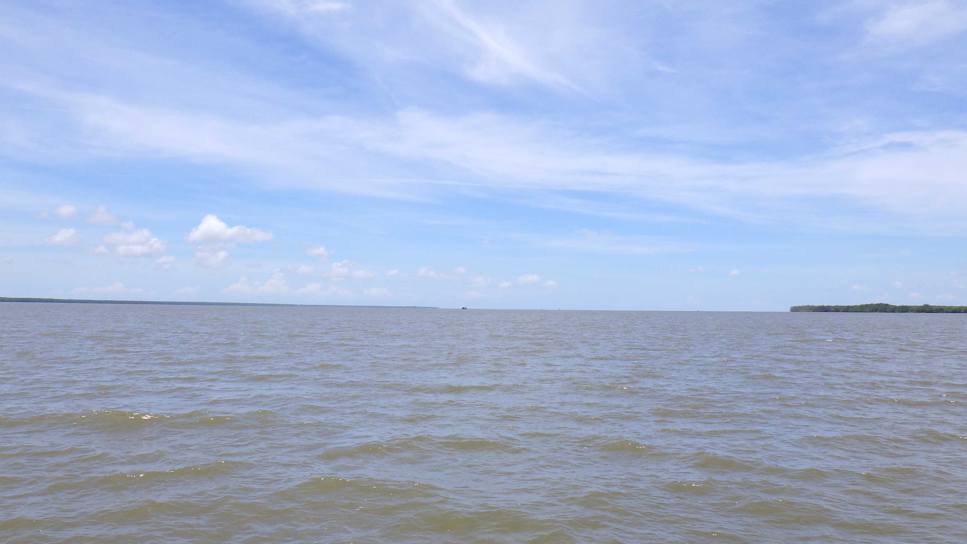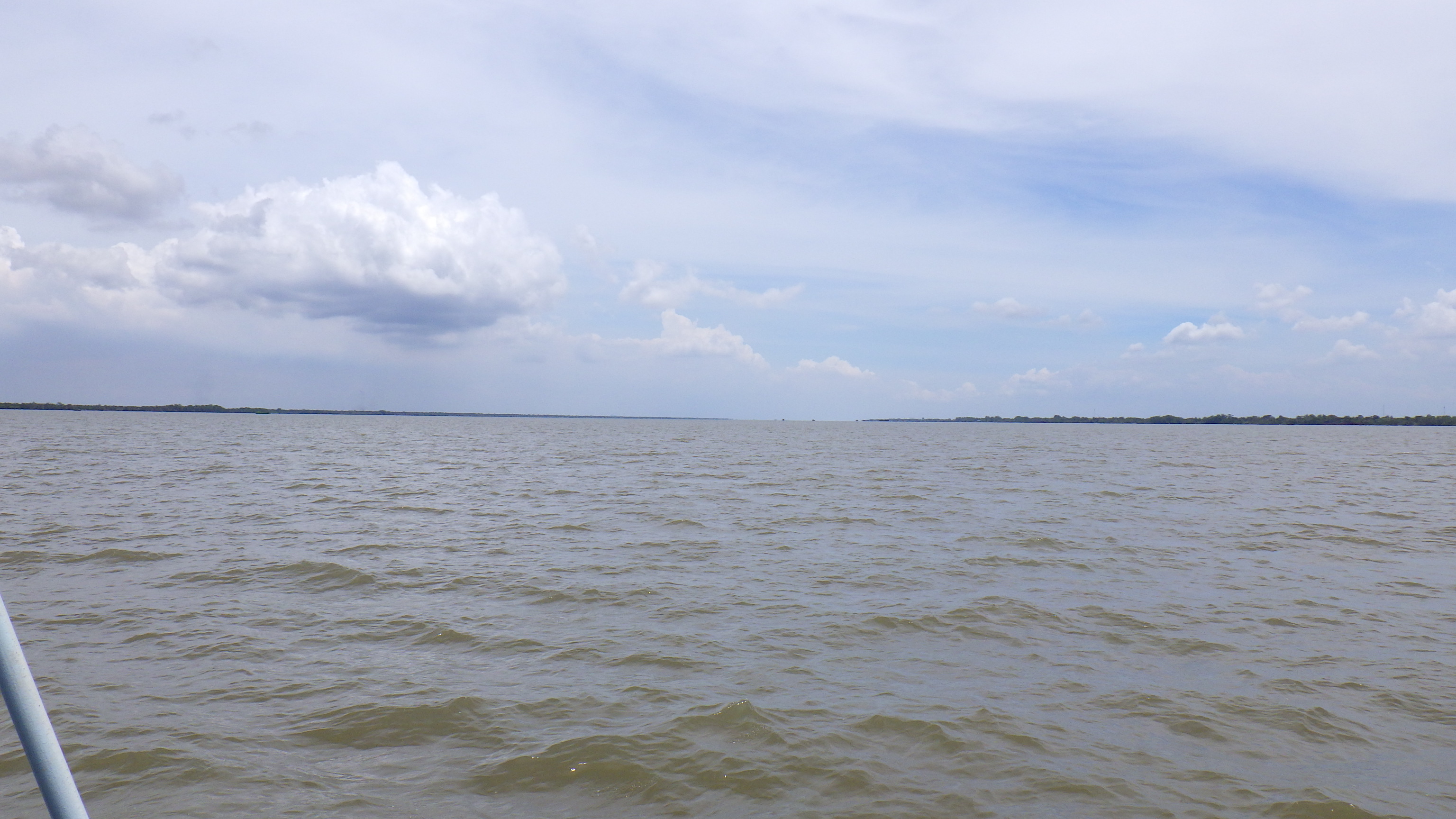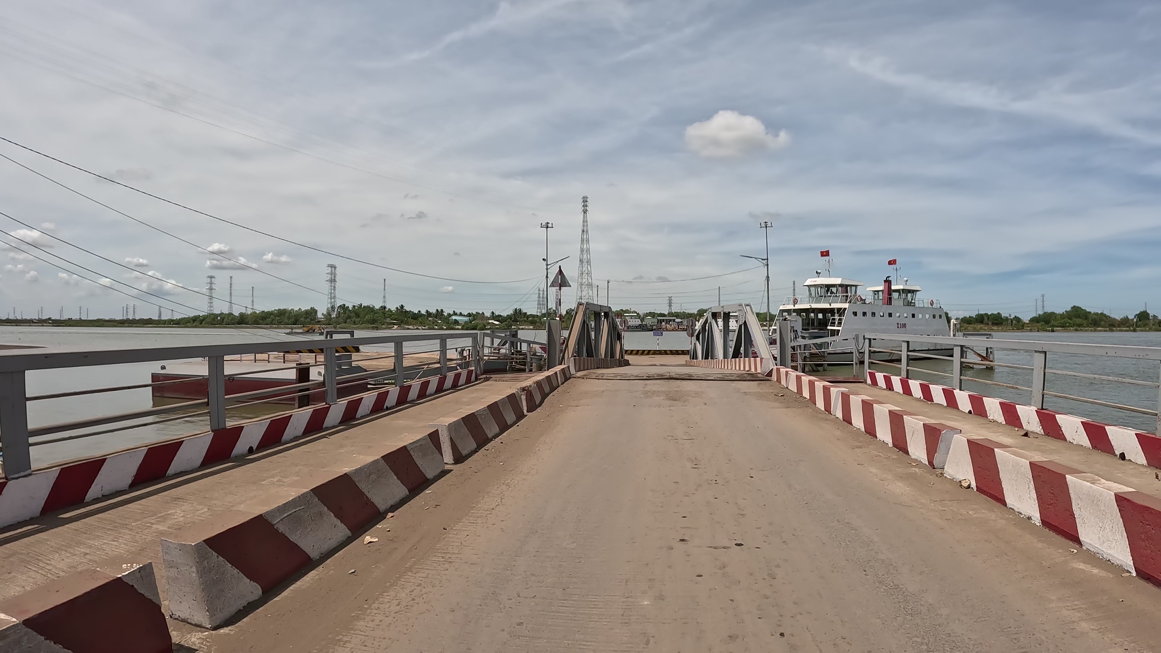 | 渡船に乗り込み次の省Tra Vinhへ。川幅が広く河口側は当然上流側を見ても水平線が見える。一瞬どちらが海?と迷ってしまう。 |