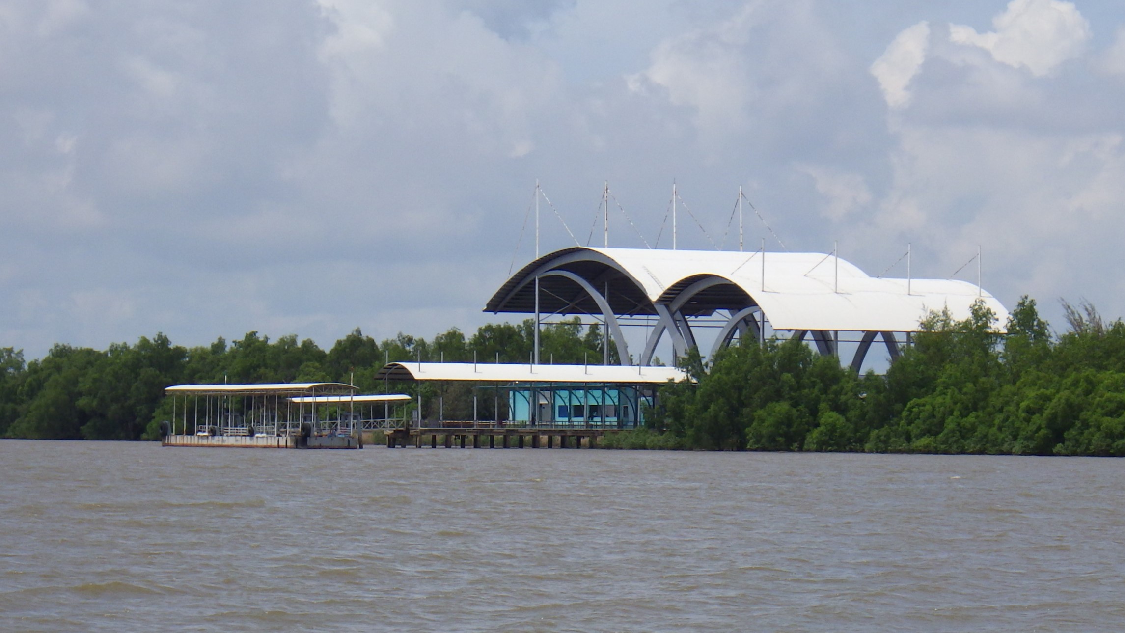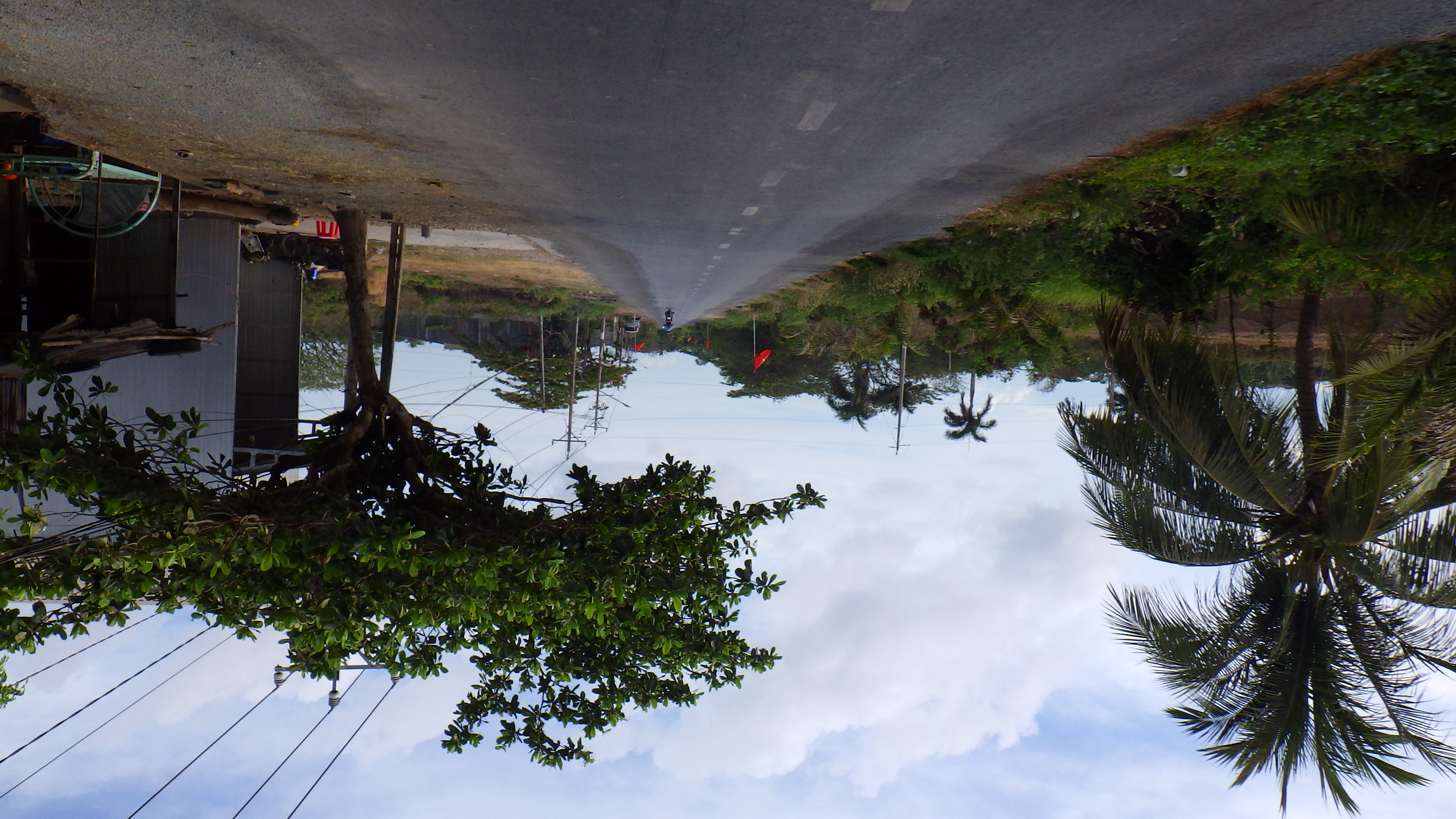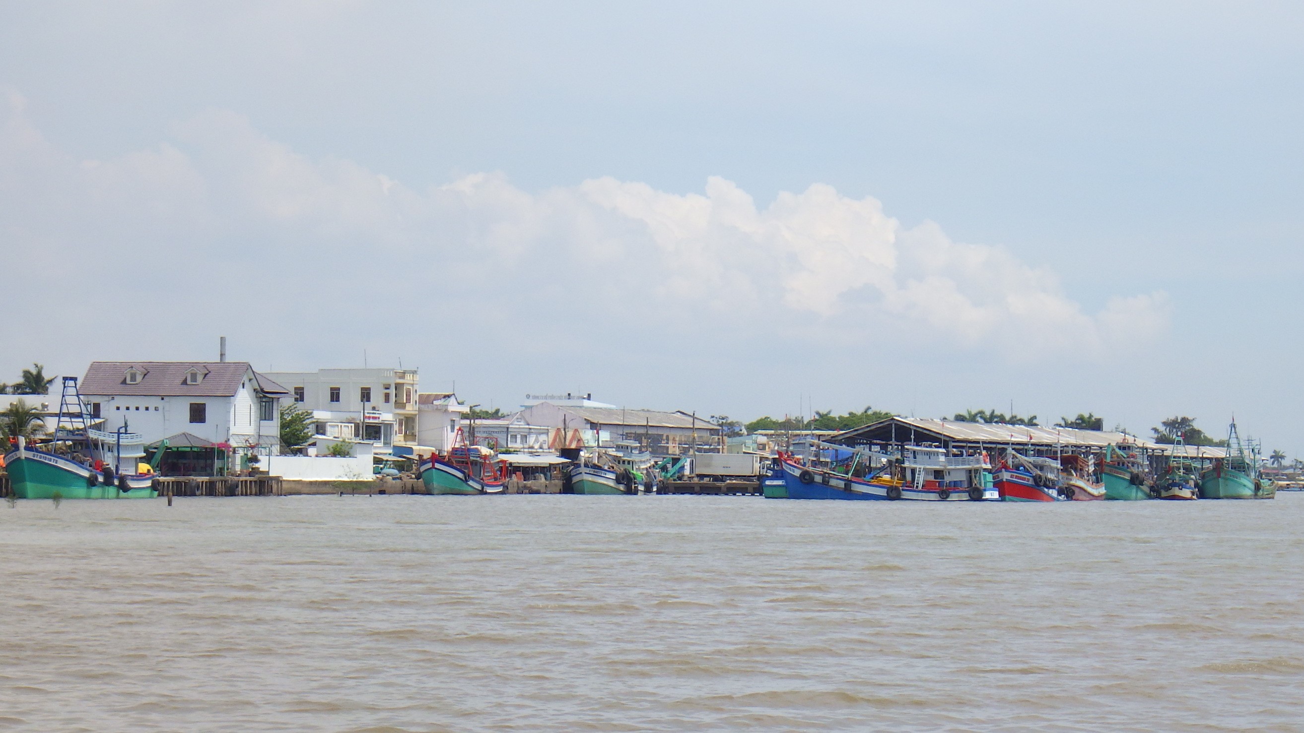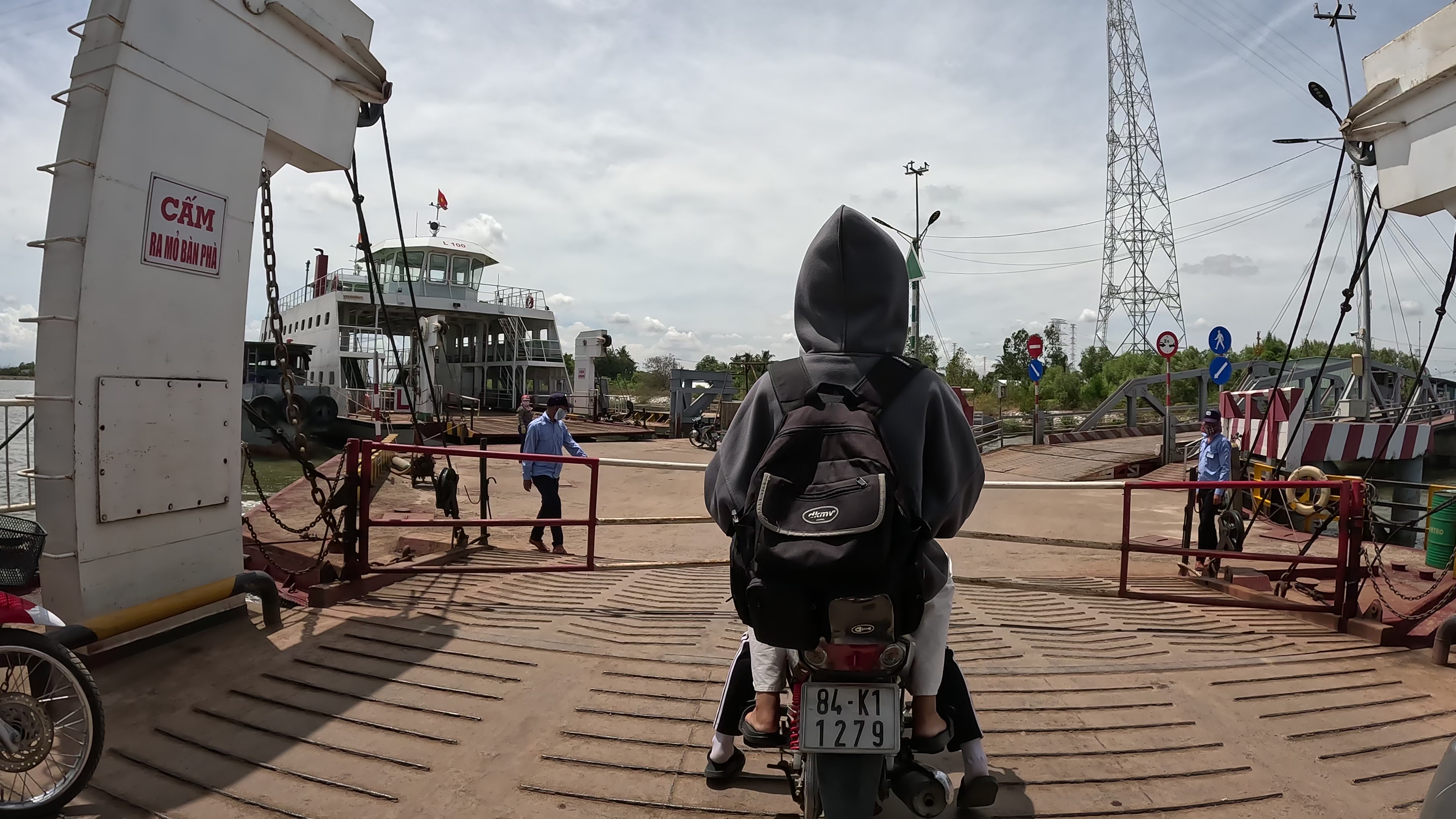 | 渡船に乗り込み次の省Tra Vinhへ。川幅が広く河口側は当然上流側を見ても水平線が見える。一瞬どちらが海?と迷ってしまう。 |