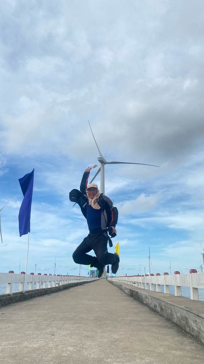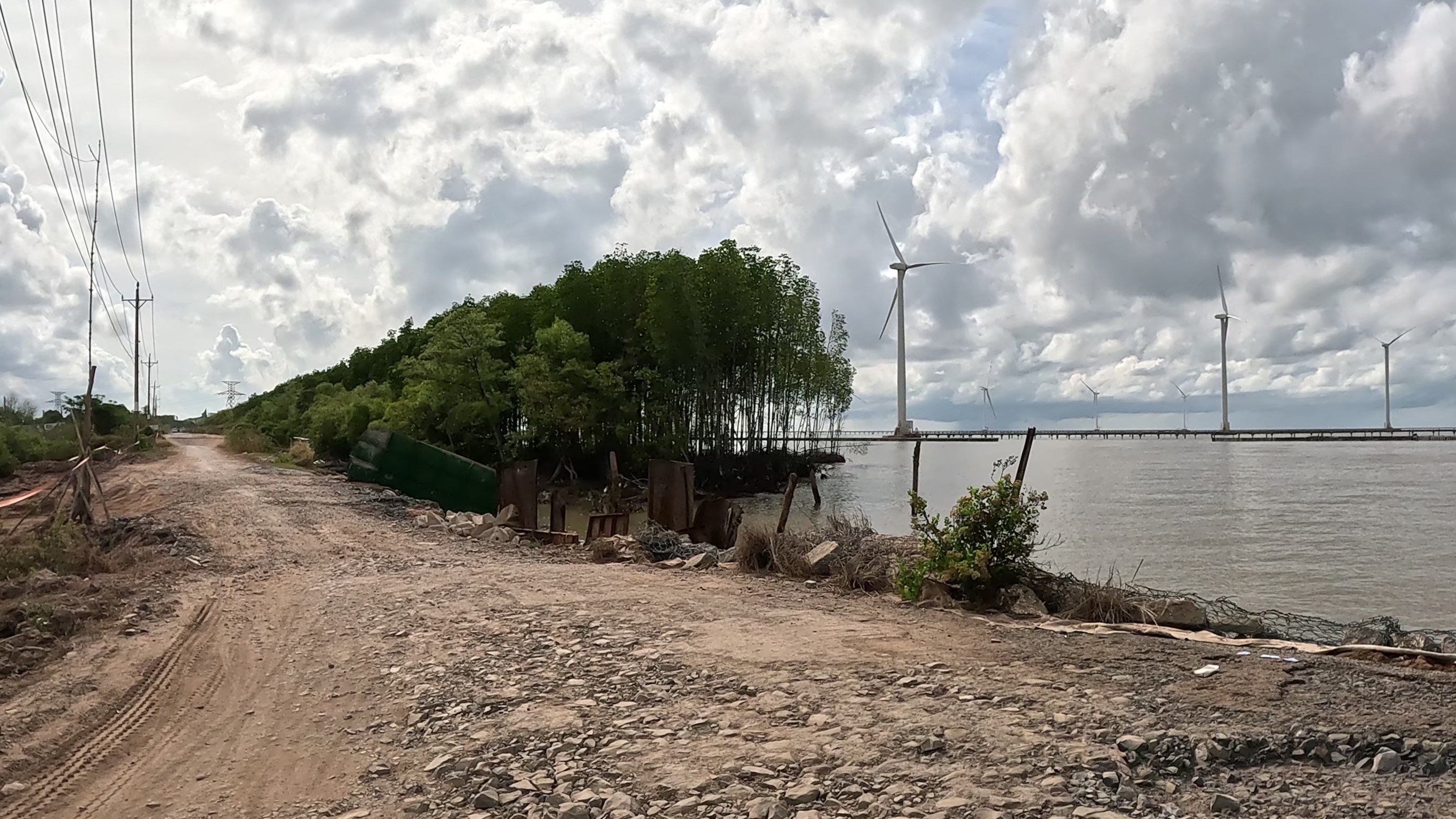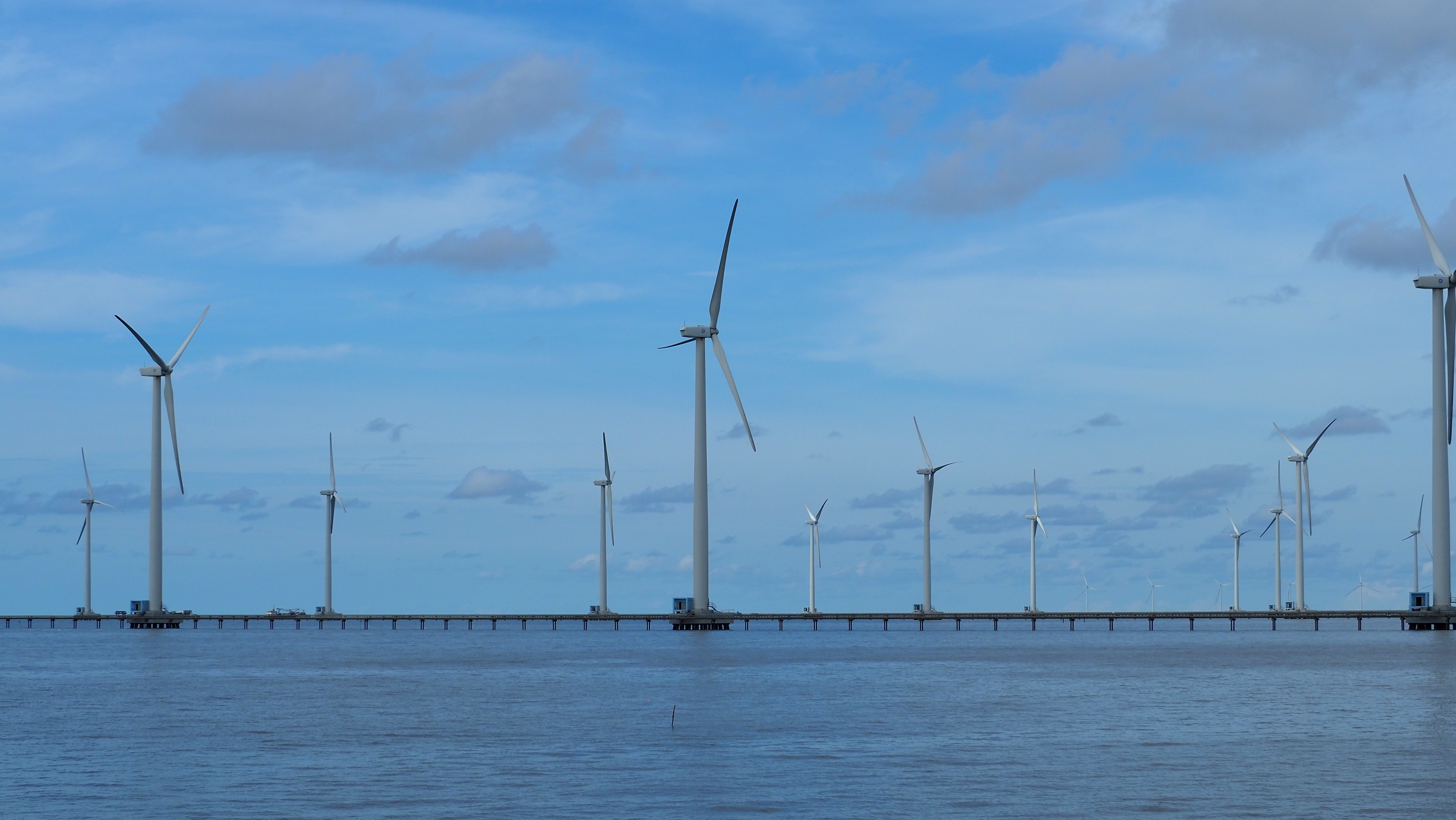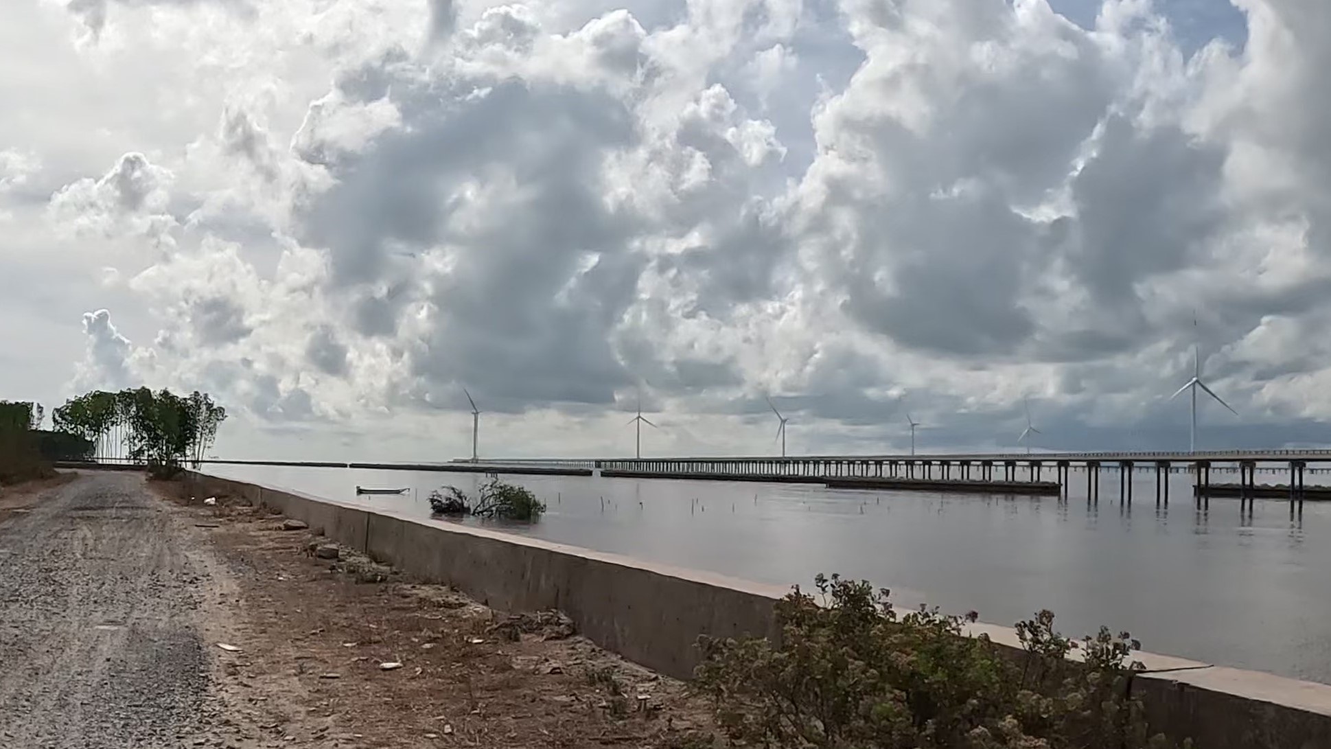 | 洋上発電所を見に海岸線に行ったのだが、それ以外にも明るくて花の多い道や、川を渡るフェリーもなかなか楽しい。メコンデルタは何もないと思っていたがそれなりに楽しいぞ! |