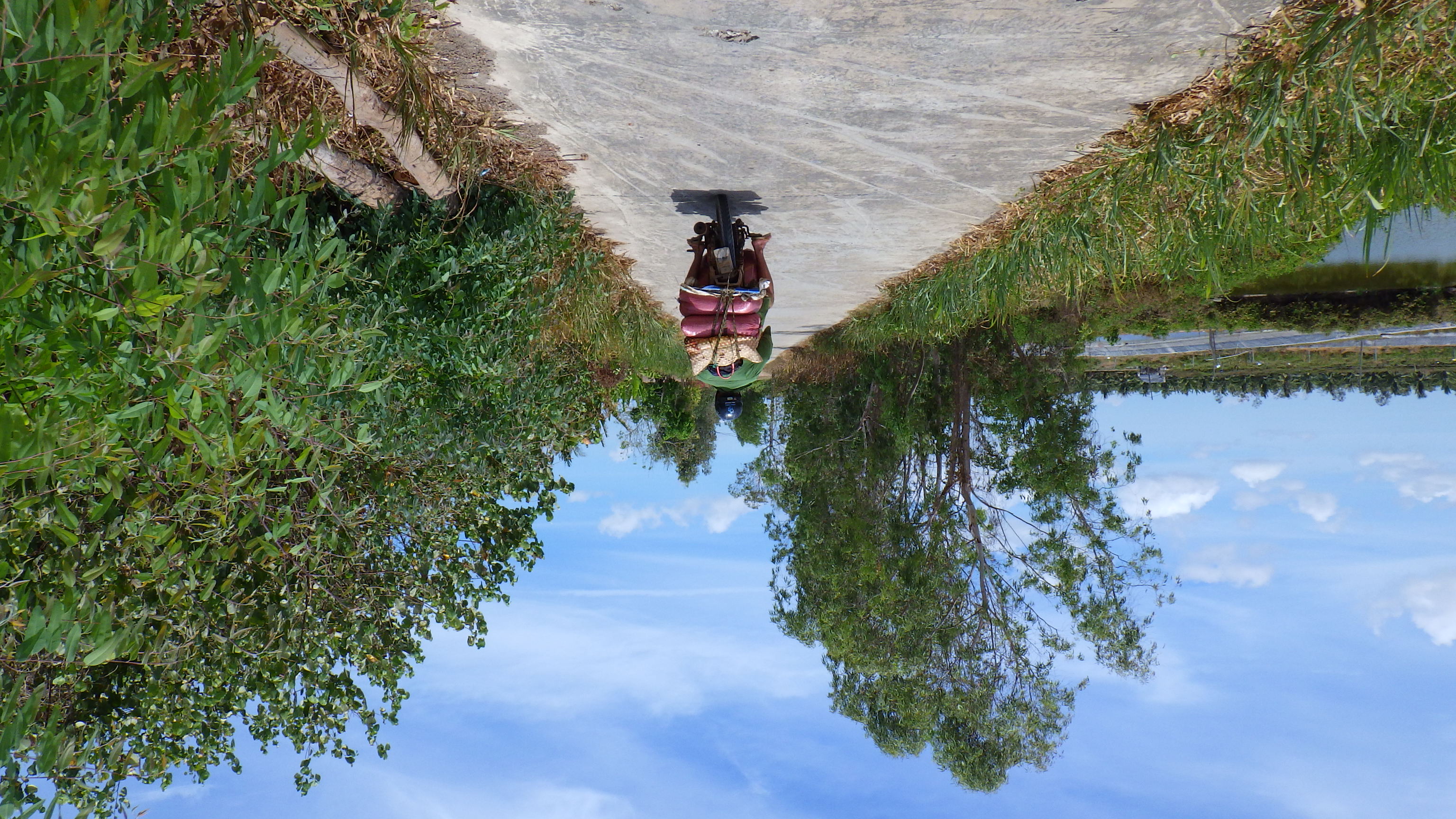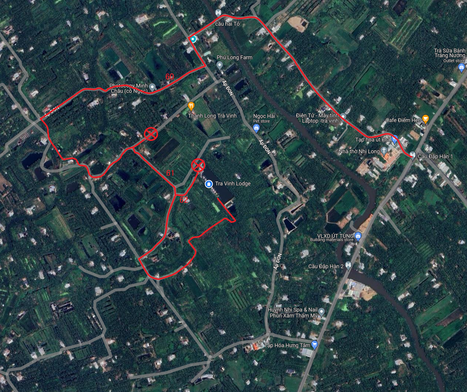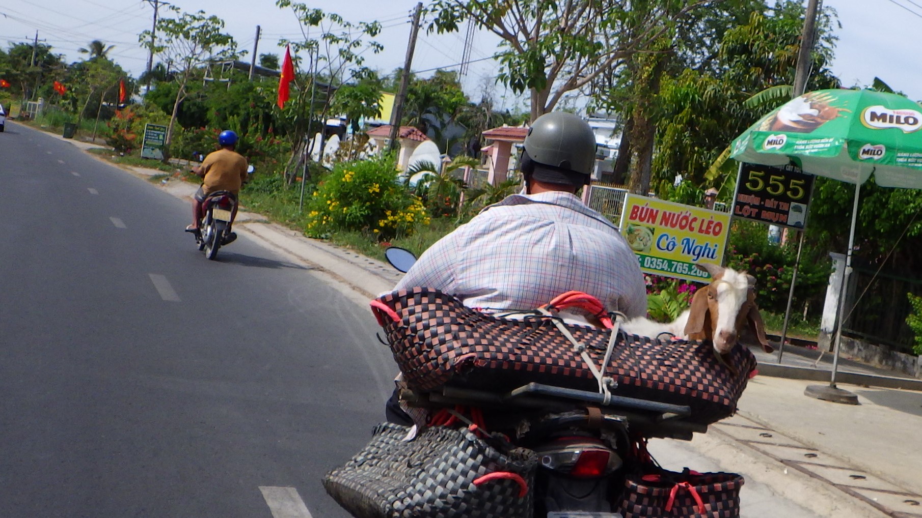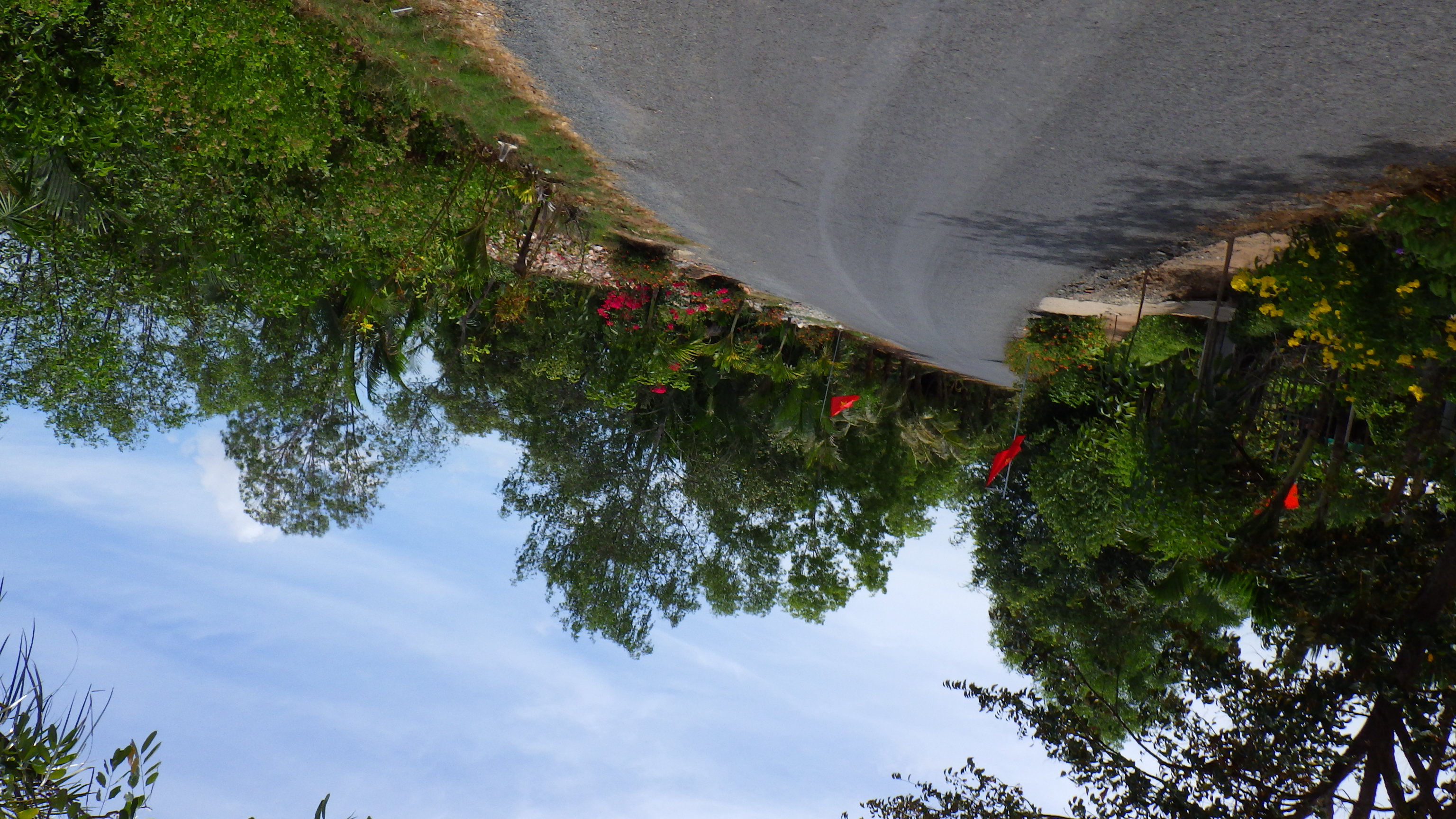 | 目的地Tra Vinh lodgeはもうすぐとほっとしていたのだが、ここで迷走、左にばかり曲がり渦を巻いているような気がする。Lodgeの裏の民家の庭先に迷い込みLodgeに連絡して迎えに来てもらったが、Lodgeはわかるわけないだろうという道にあった。Lodge側からしたらまさかバイクで来るとはと思わなかったらしい。なるほど広い道まで迎えに行くカートが用意されていた。 |