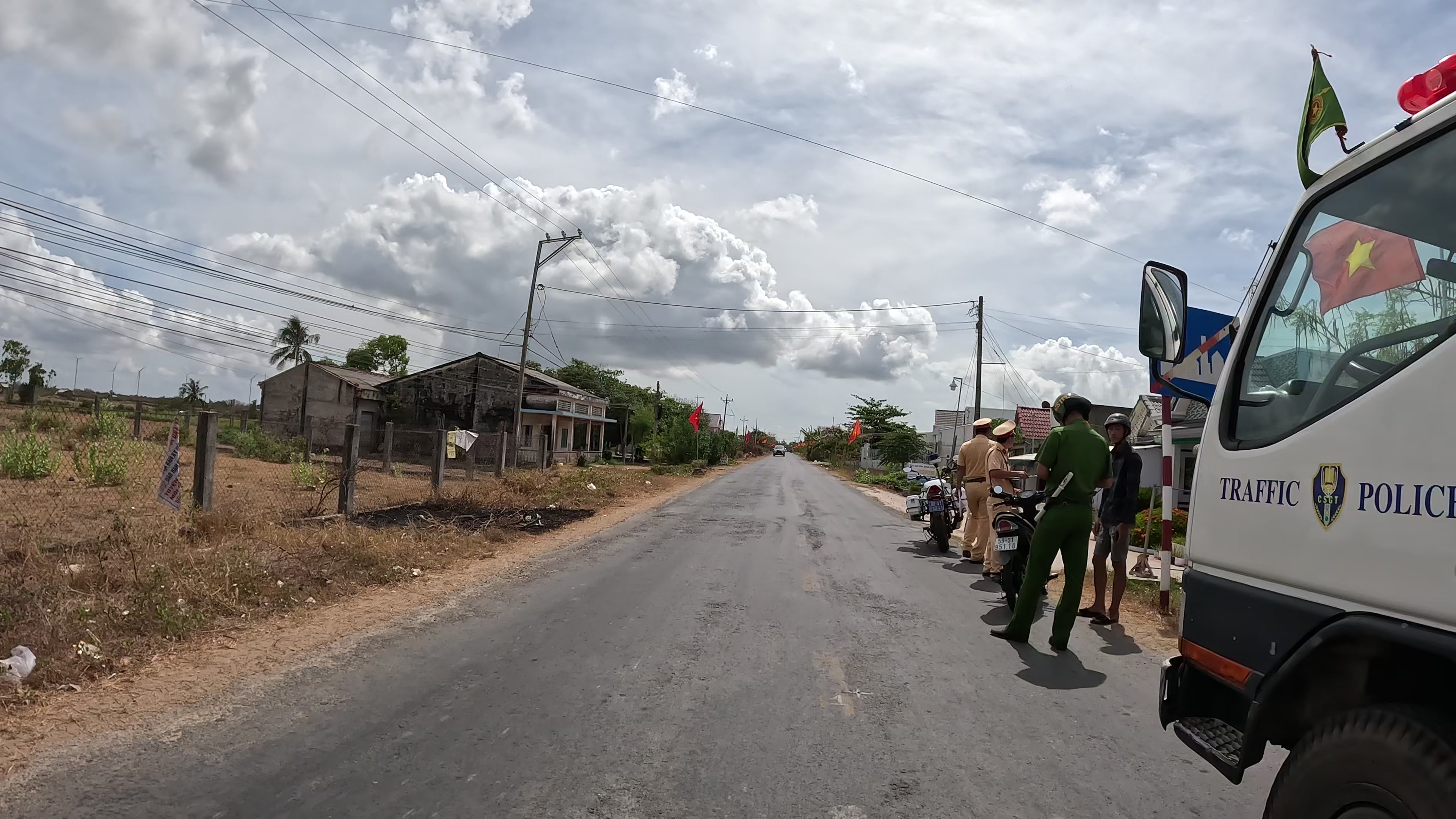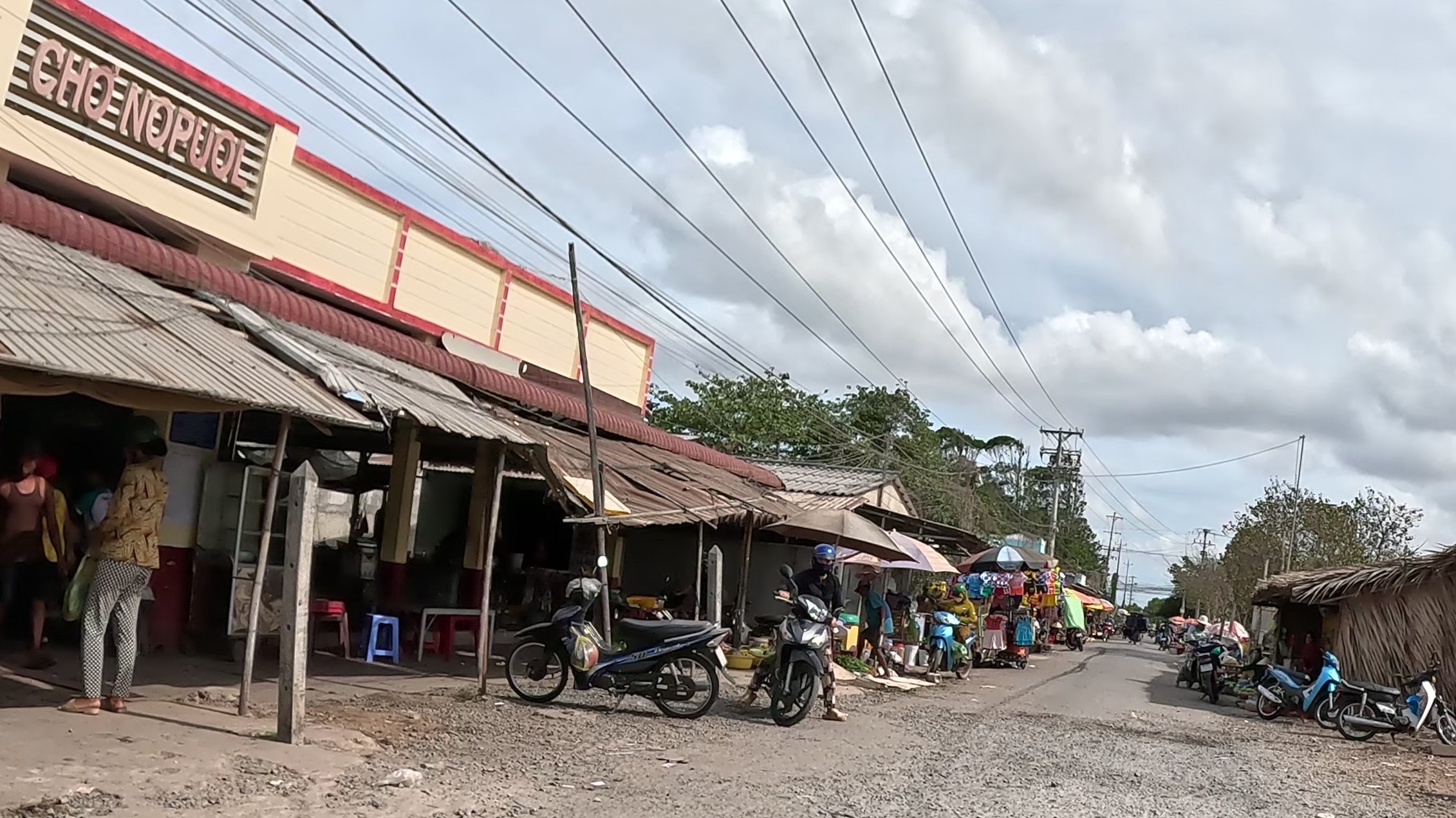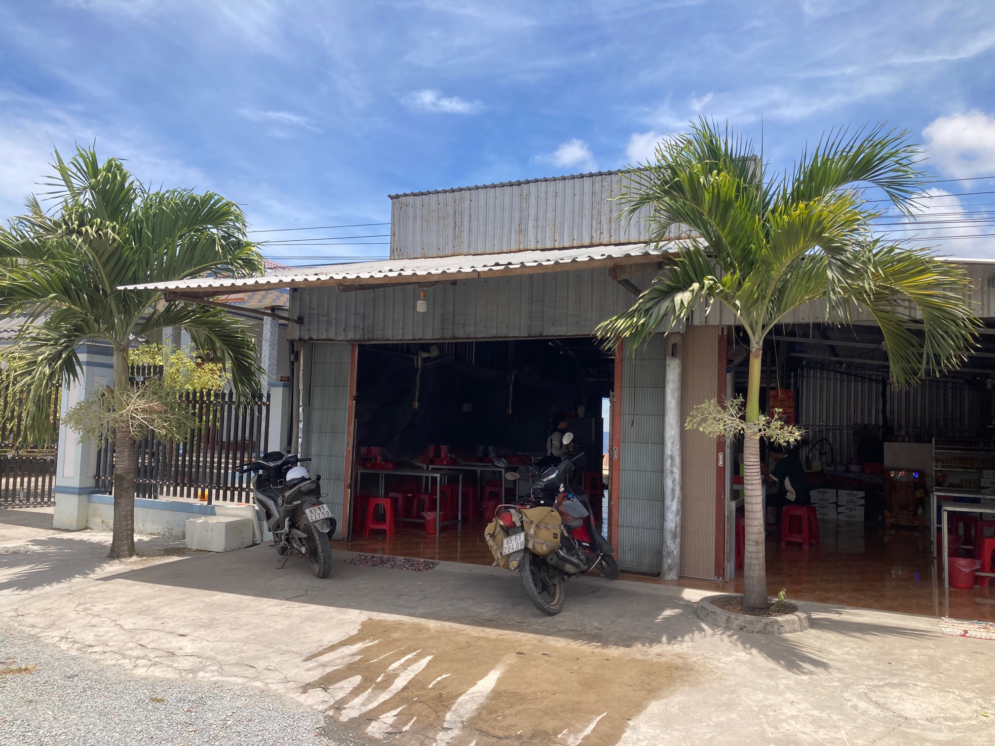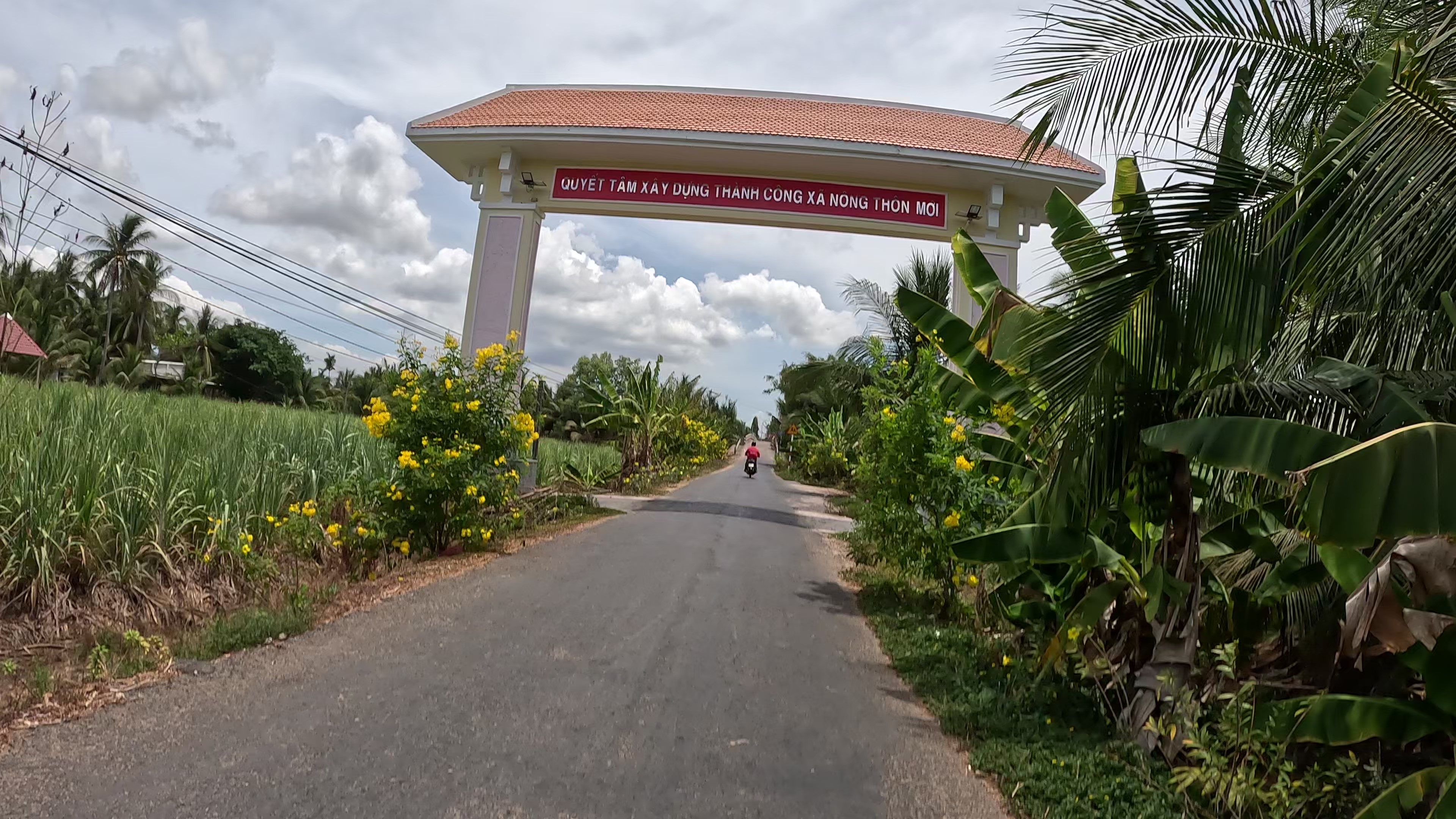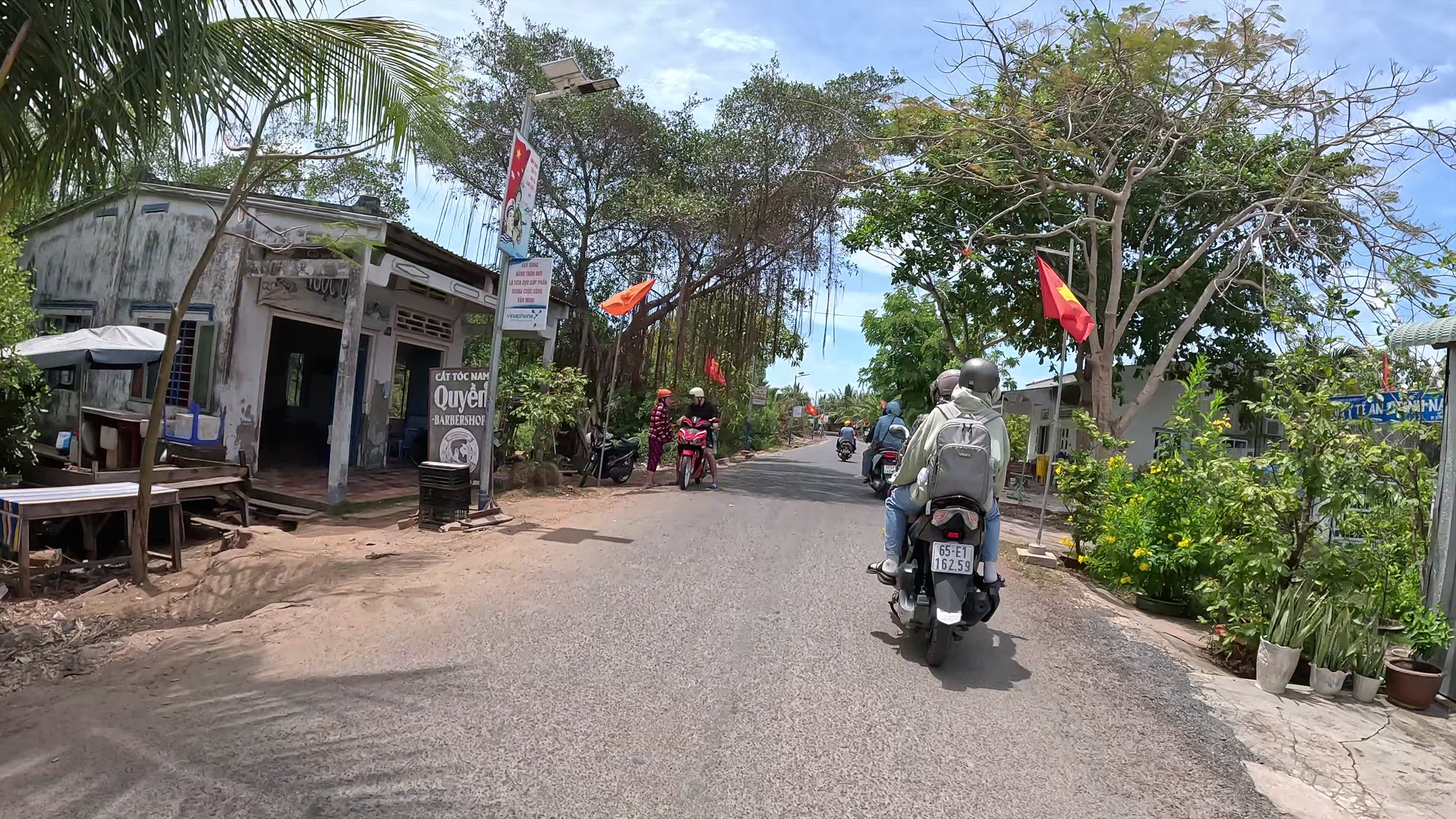 | Tra Vinhに上陸してここでものどかな景色を走る。食堂を見つけ南部の麺 Hu thiu を食べる。外国人が珍しいのか親切にしてくれる。 |