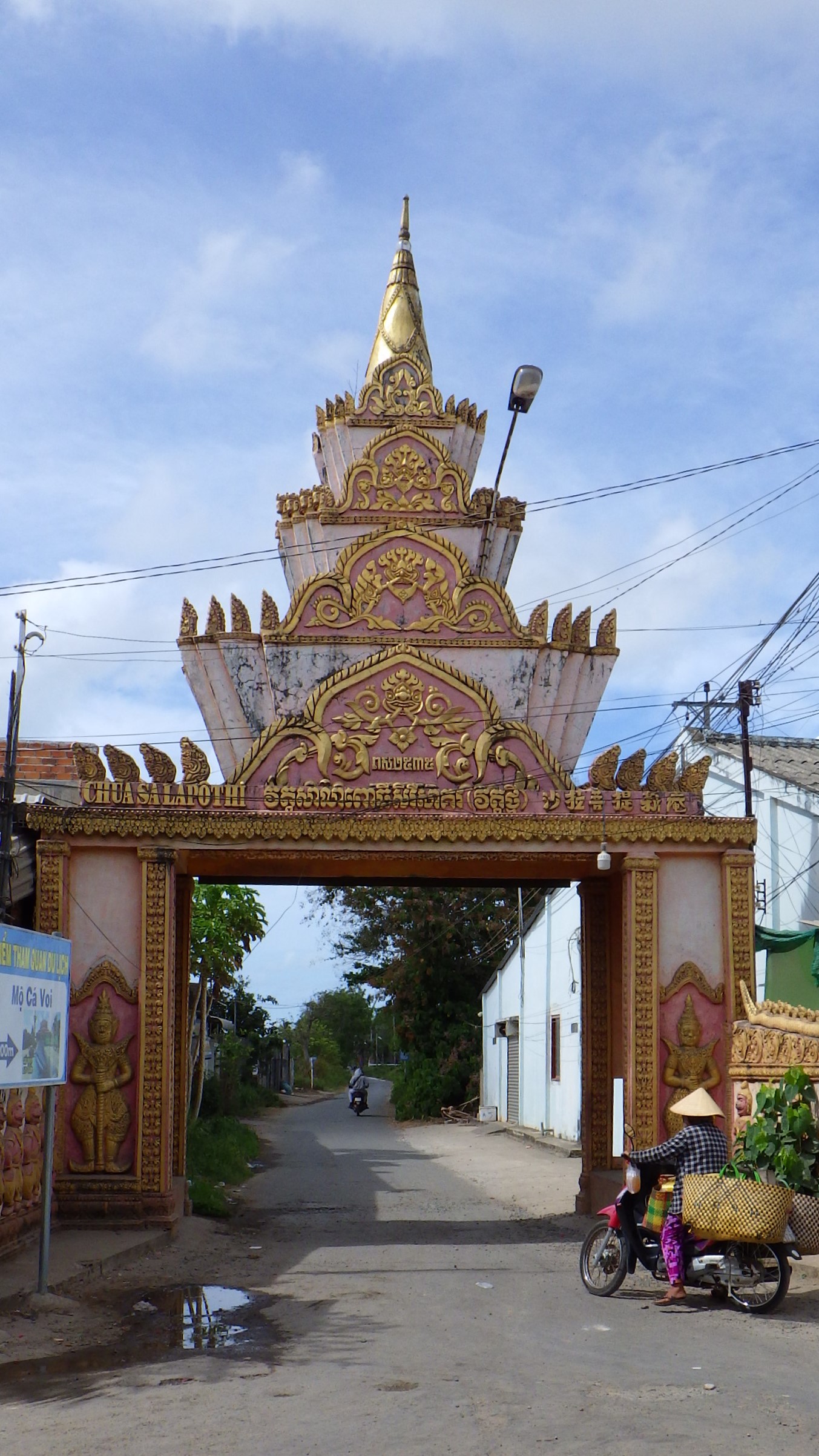 | ホテルを出て洋上風力発電所に向かう。南部ではクメール文化に関係していると思える寺を時々見かける。 |