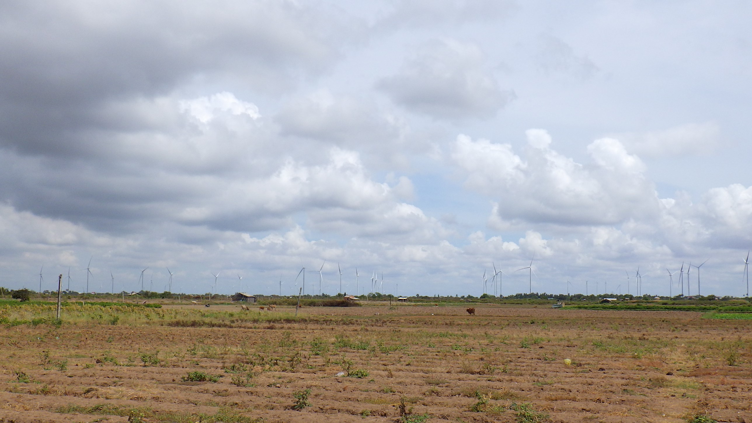 | QL91Bにでるとここにもクメール文化を感じる門がある。そして広大土地には、地上にも風力発電所。 |