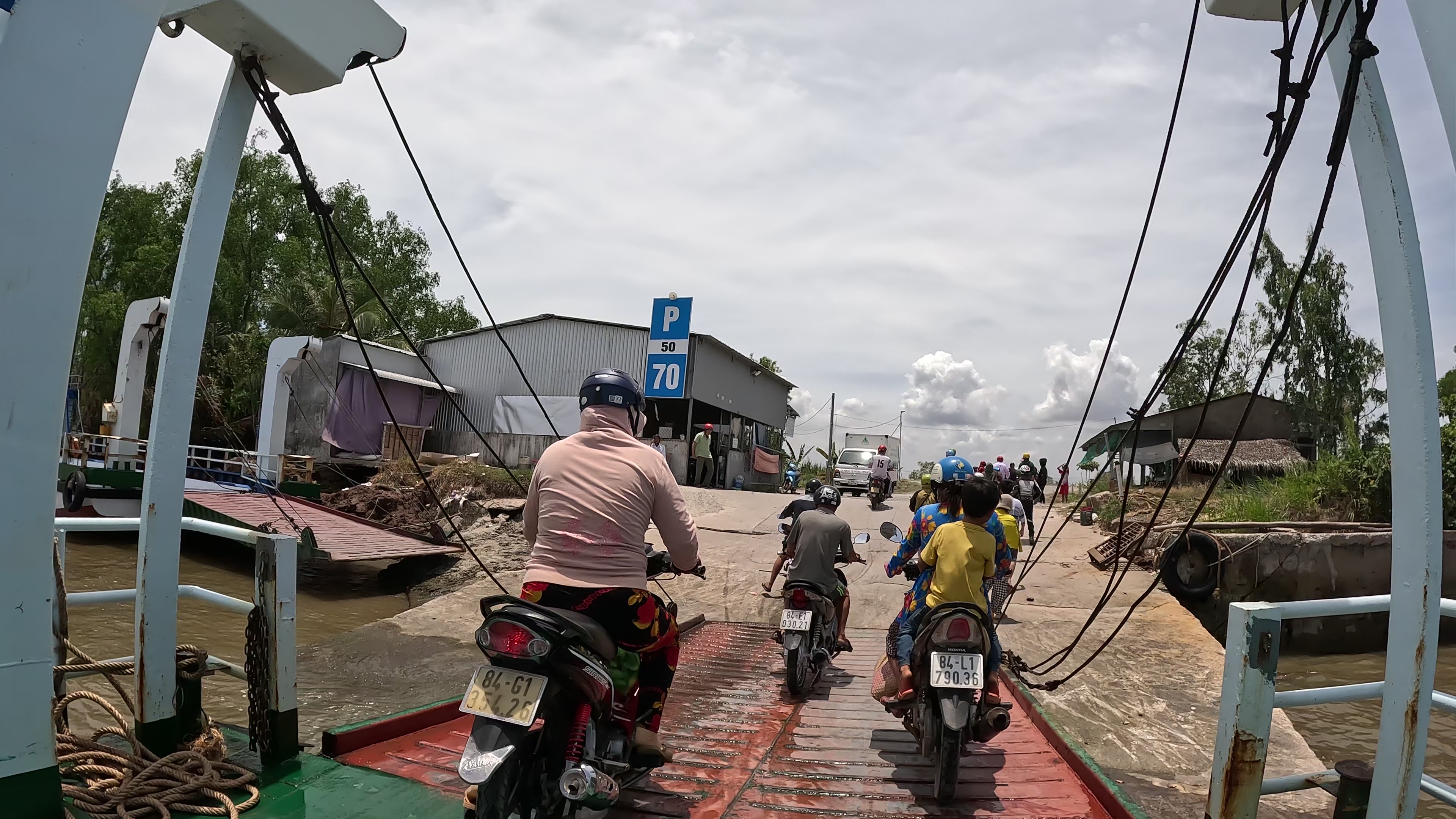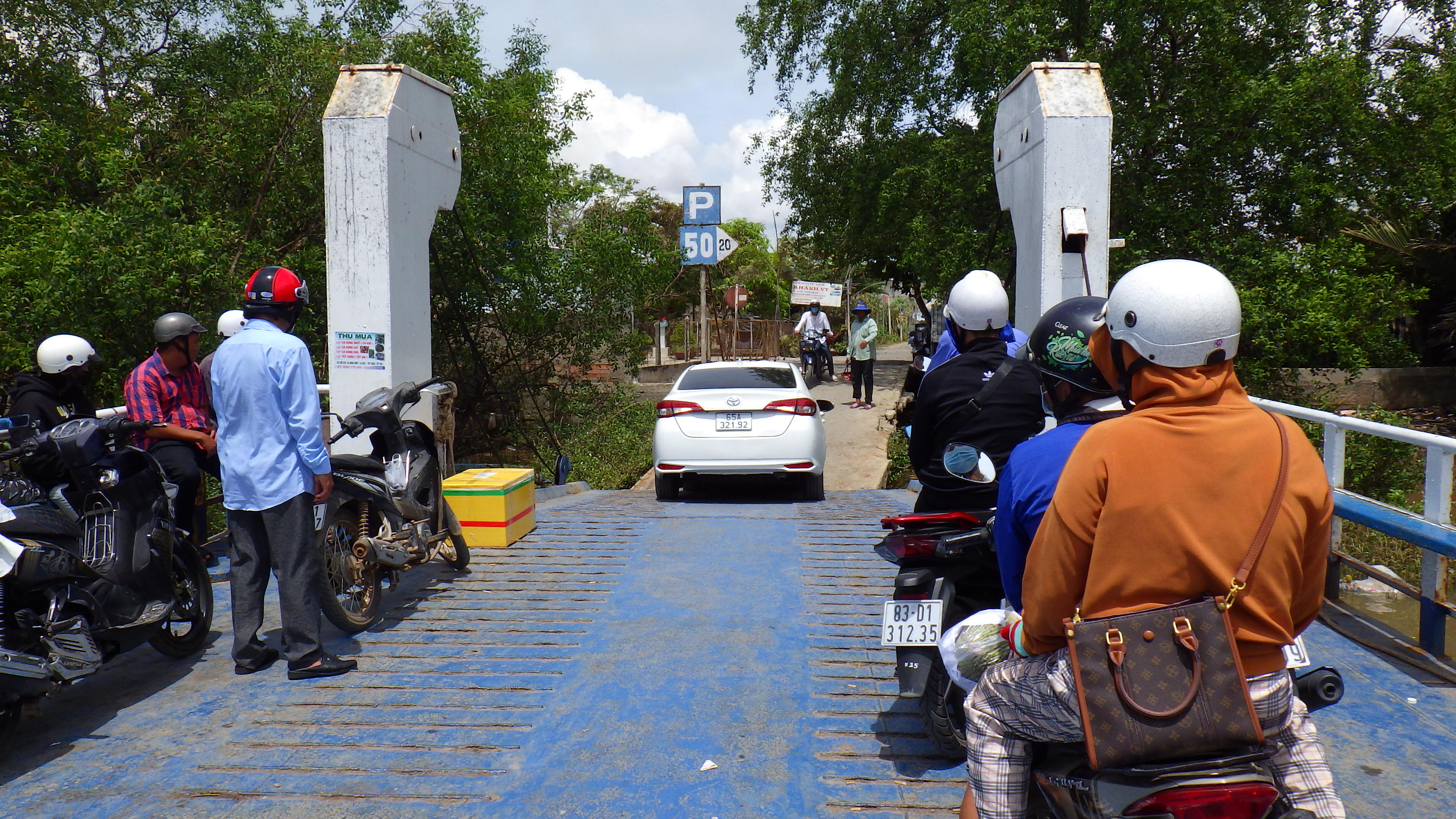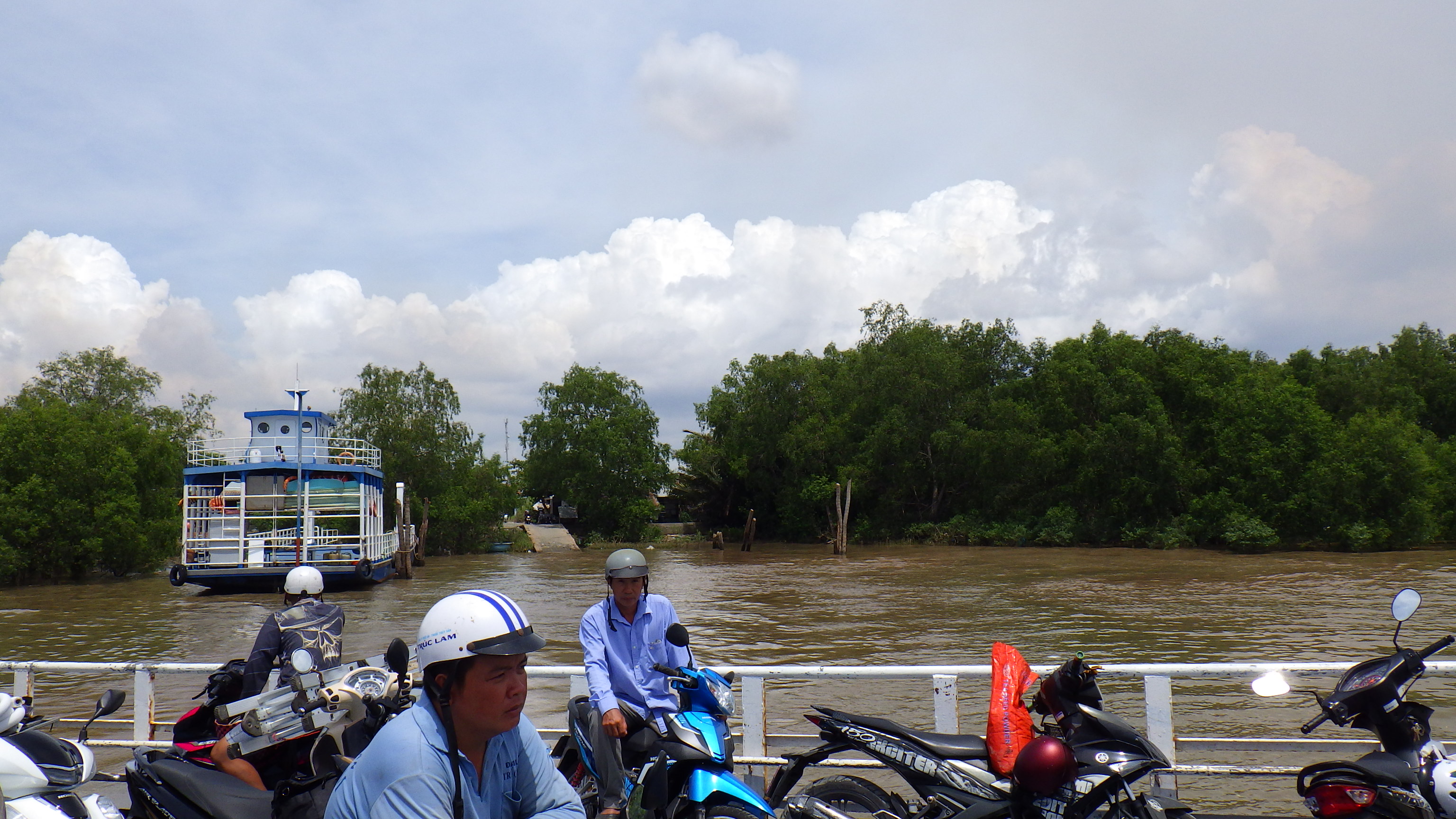 | 渡船に乗りSoc Trangの三角州Cu Lao Dungへ。渡船料15,000VND(90円)川幅が広いだけあり少し高い |