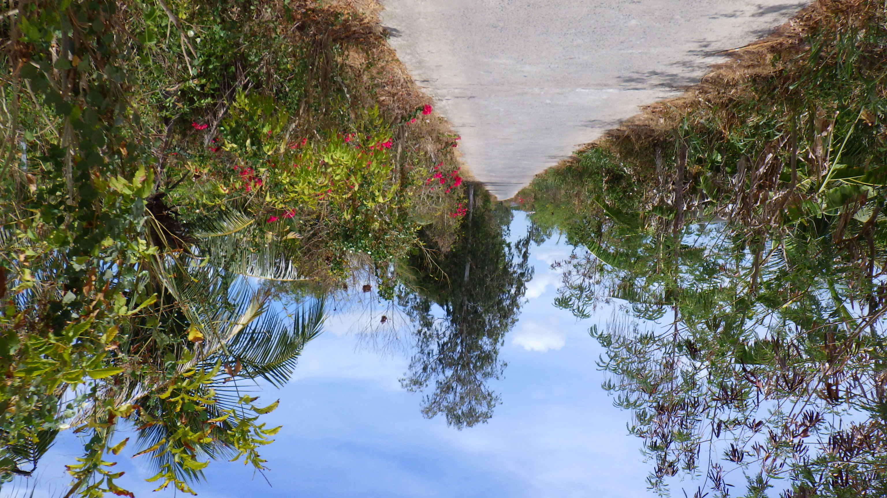 | 海岸沿いにゆくと未舗装路になる。ひび割れた未舗装路は、ショックが逝かれたバイクではきついのでしばらく先で舗装路がありそうな道へと逃げる。 |