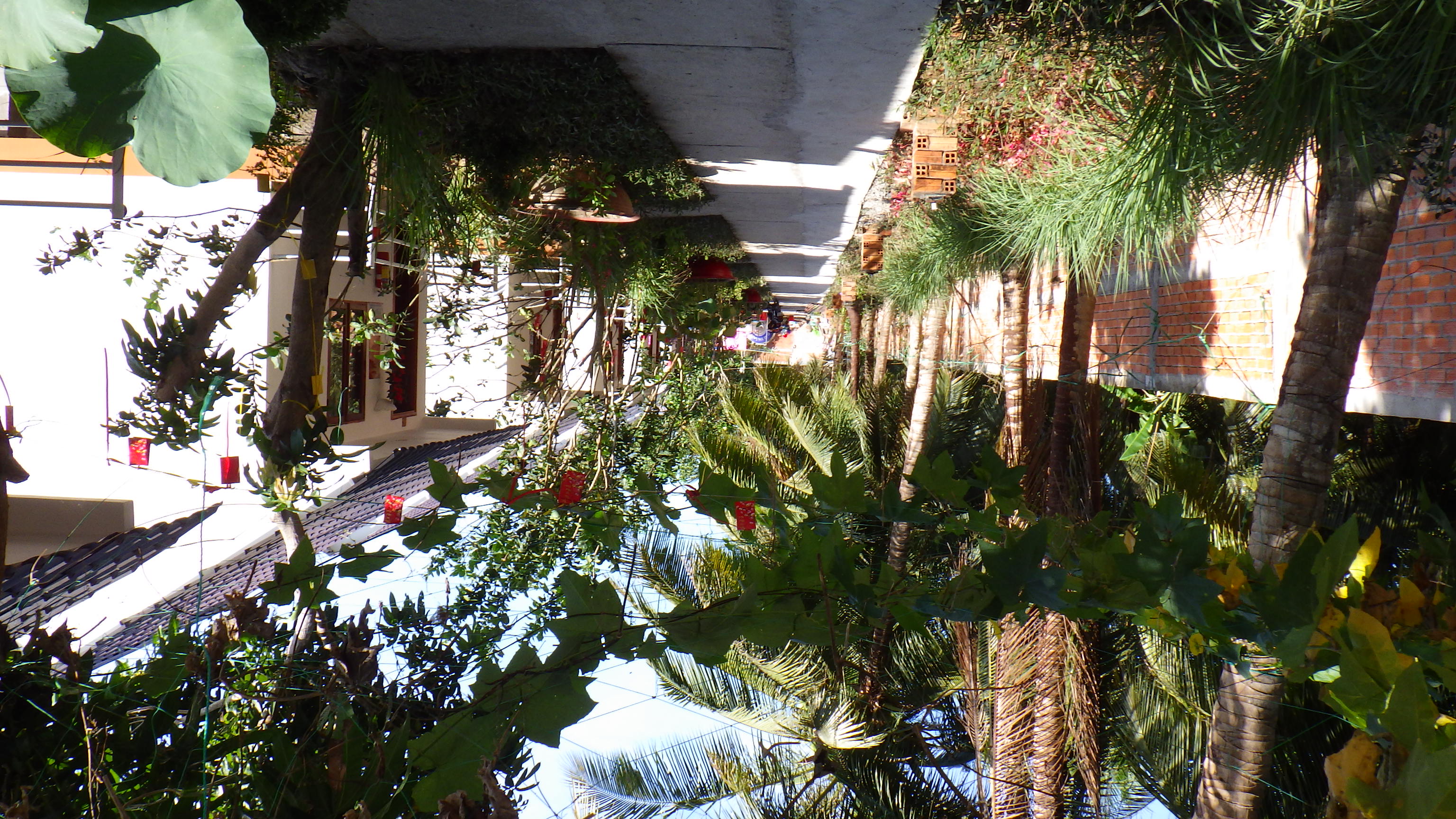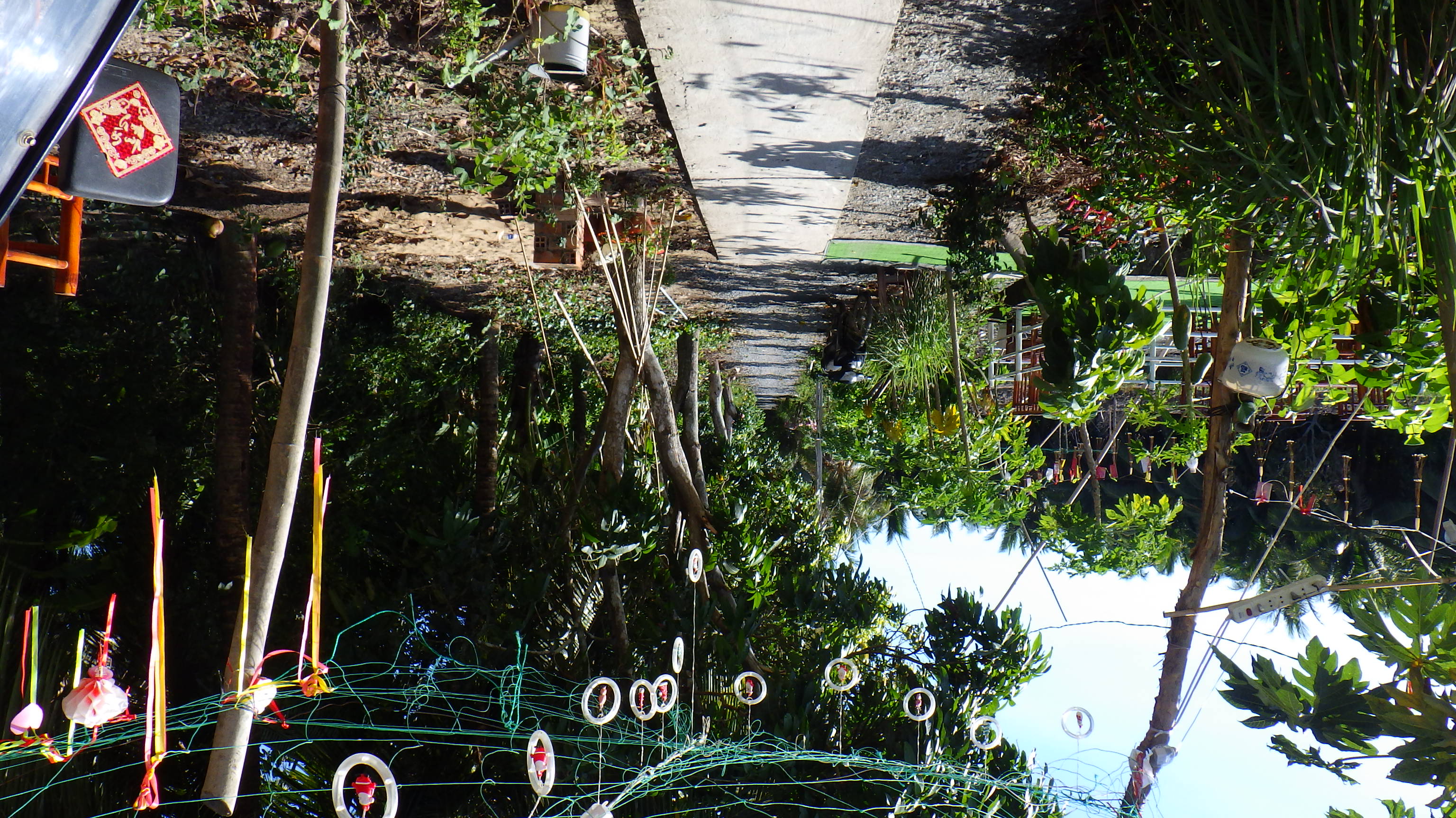 | 川を渡りTra VinhからBen Treへ端から見ると緑のジャングルに見える。QL57に入ると植木屋なのだろう面白い刈込が見える。 |
