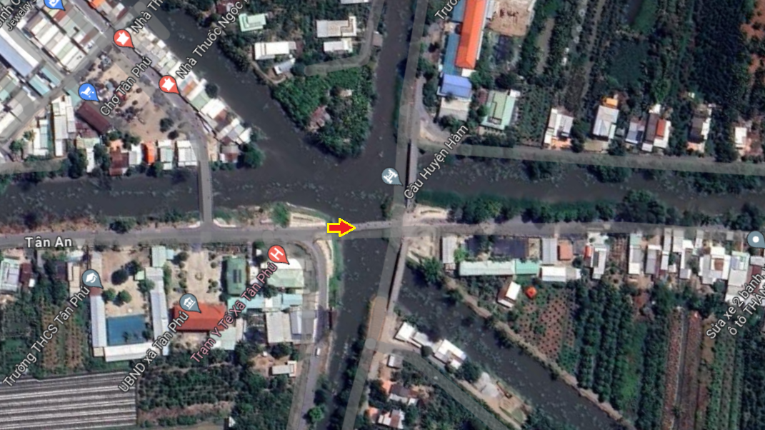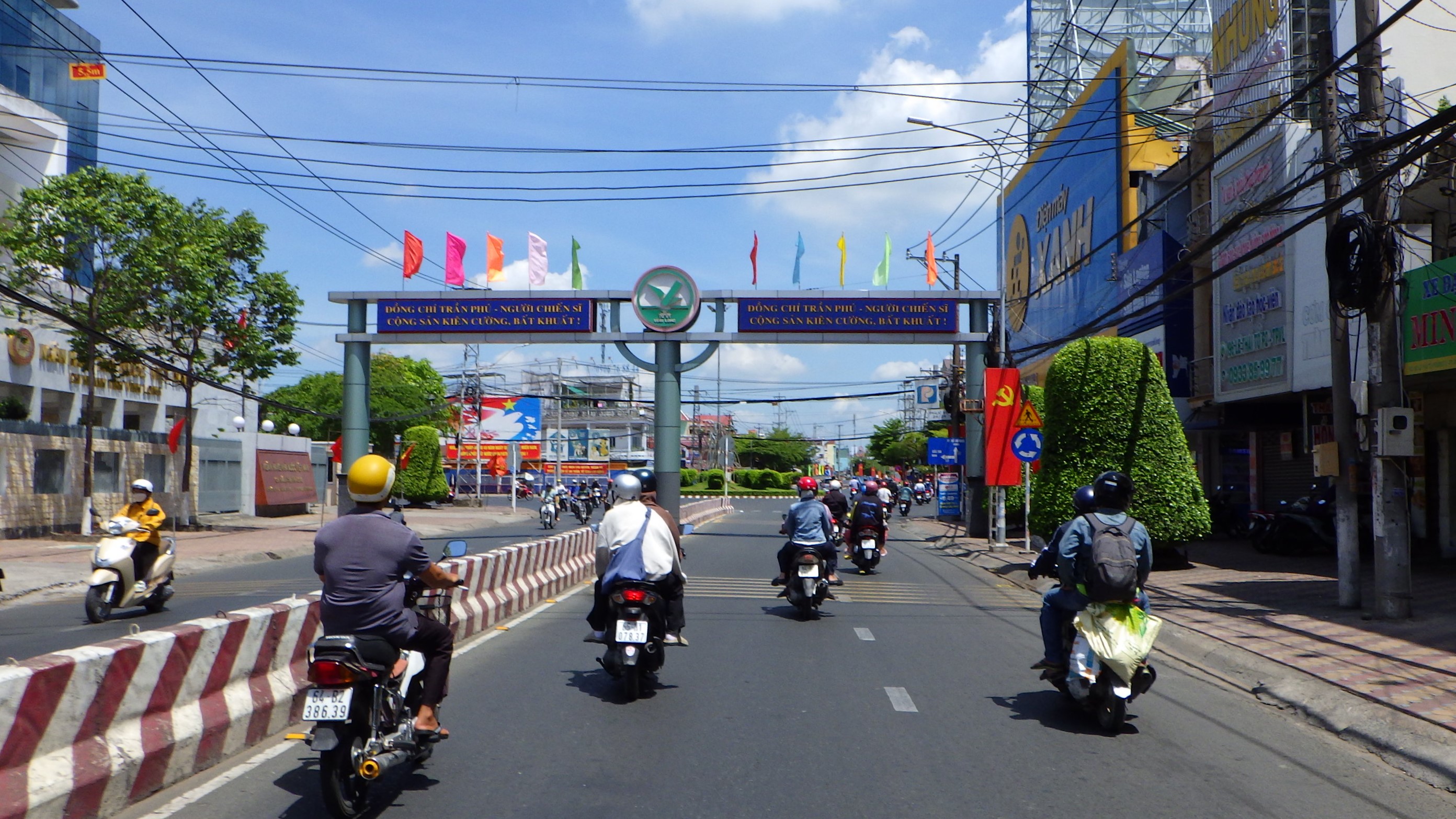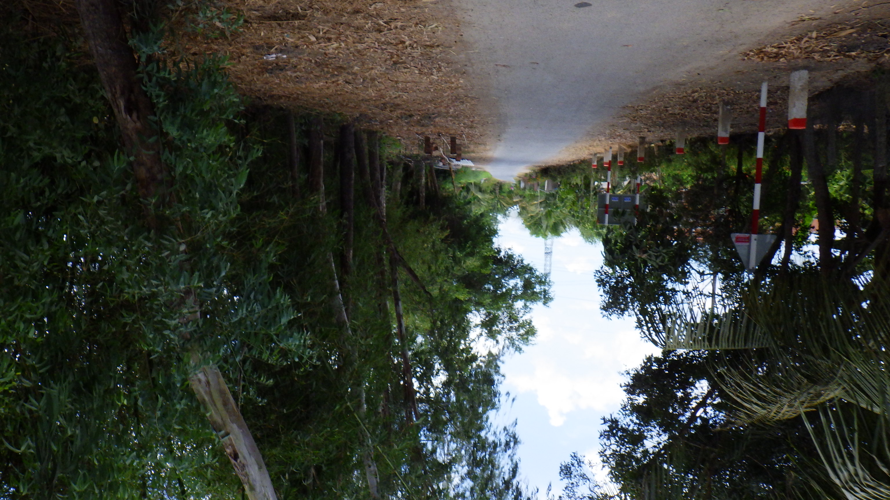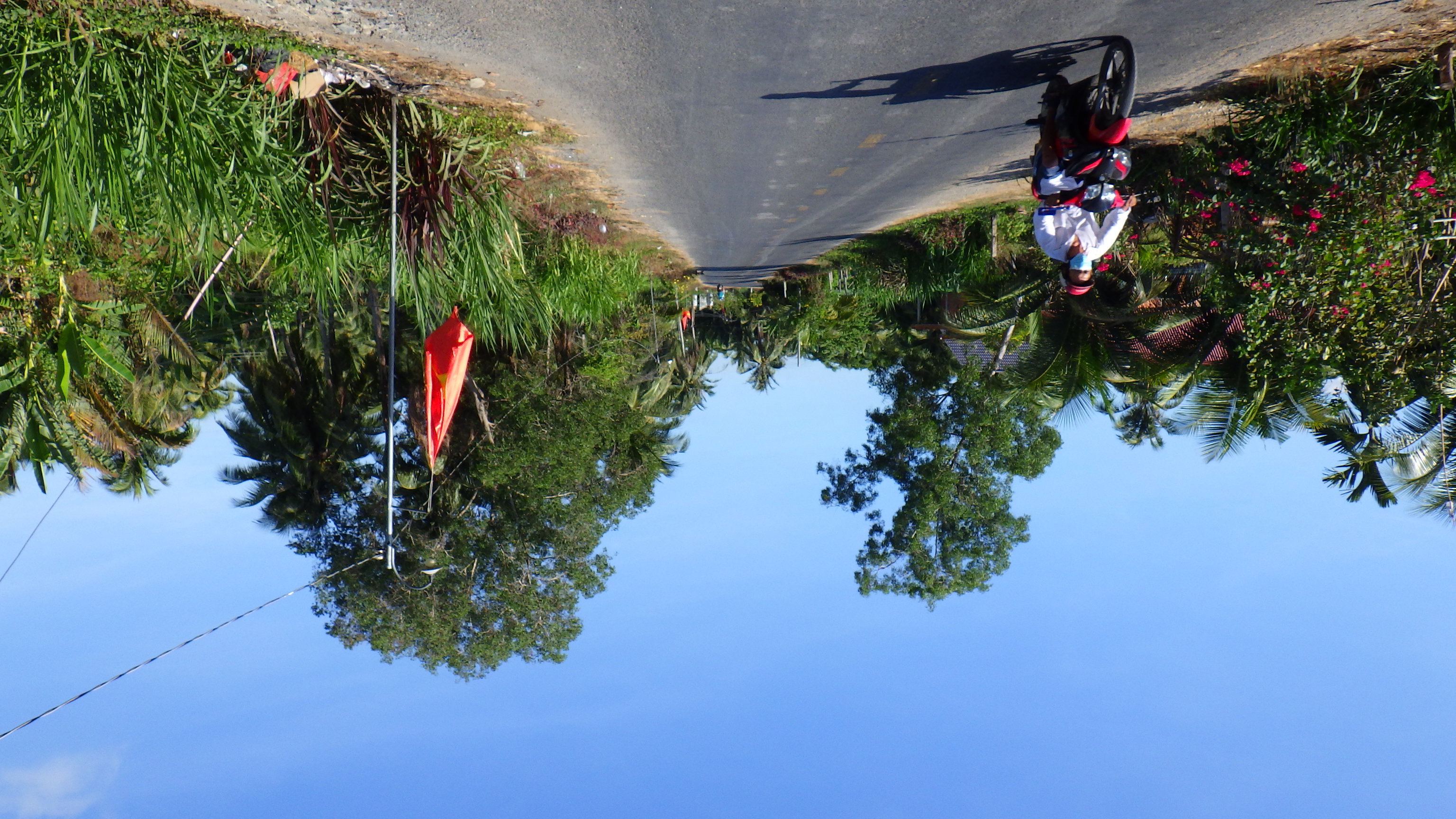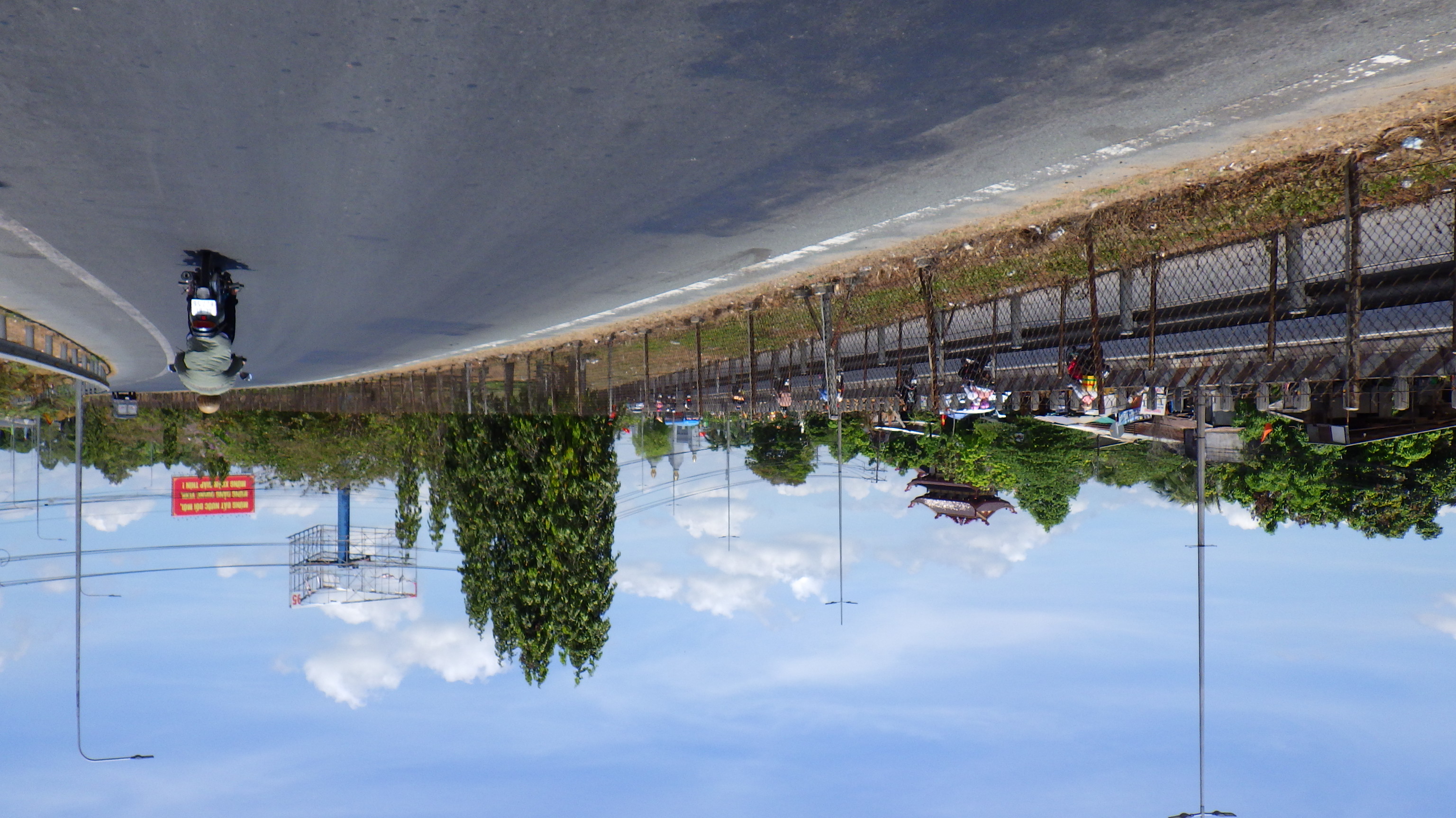 | Vinh Longの街中を通り抜けQL53からQL1Aに入る。行先看板がおかしいぞ、まっすぐ行くと道はSa Decに向かう高架をくぐり右の橋を越えてTien Giangに行ってしまう。Ho Chi Minhに行くならSa Dec同様右に行き高架を越えて左折だ。何度地図を確認してもそうだ。Sa Decに向かうので右に行く。その先国道はつまらないので渡船のある小道へ |
