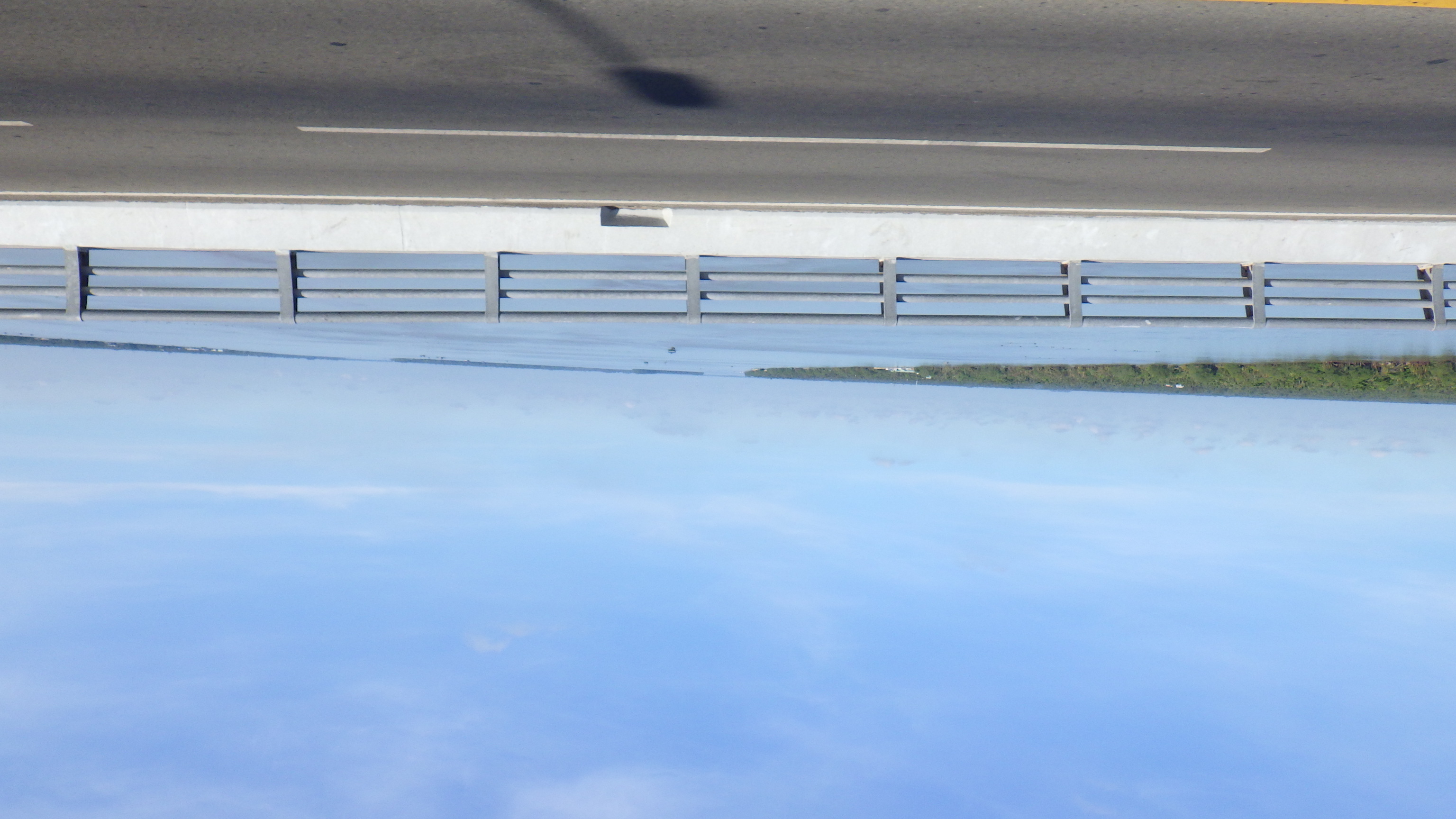 橋を渡ろうとして気が付いた。上の航空写真の通り、3本の川が交差する不思議な場所。なんじゃこれ?川はどちらに流れるのか?あまりにも平坦なためこのあたりまで潮の影響を受けるであろうから行ったり来たりするのでしょうか。 |