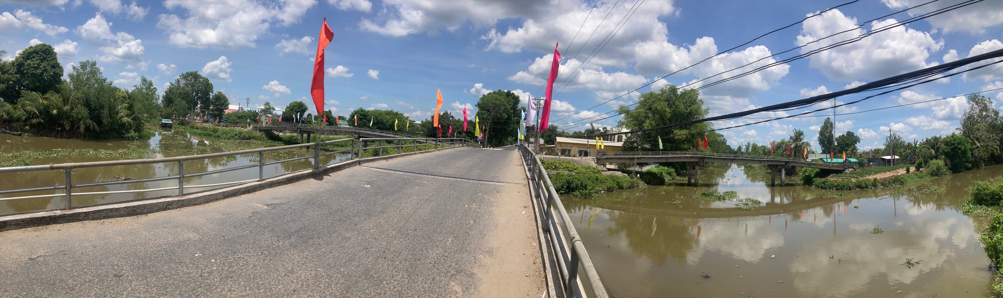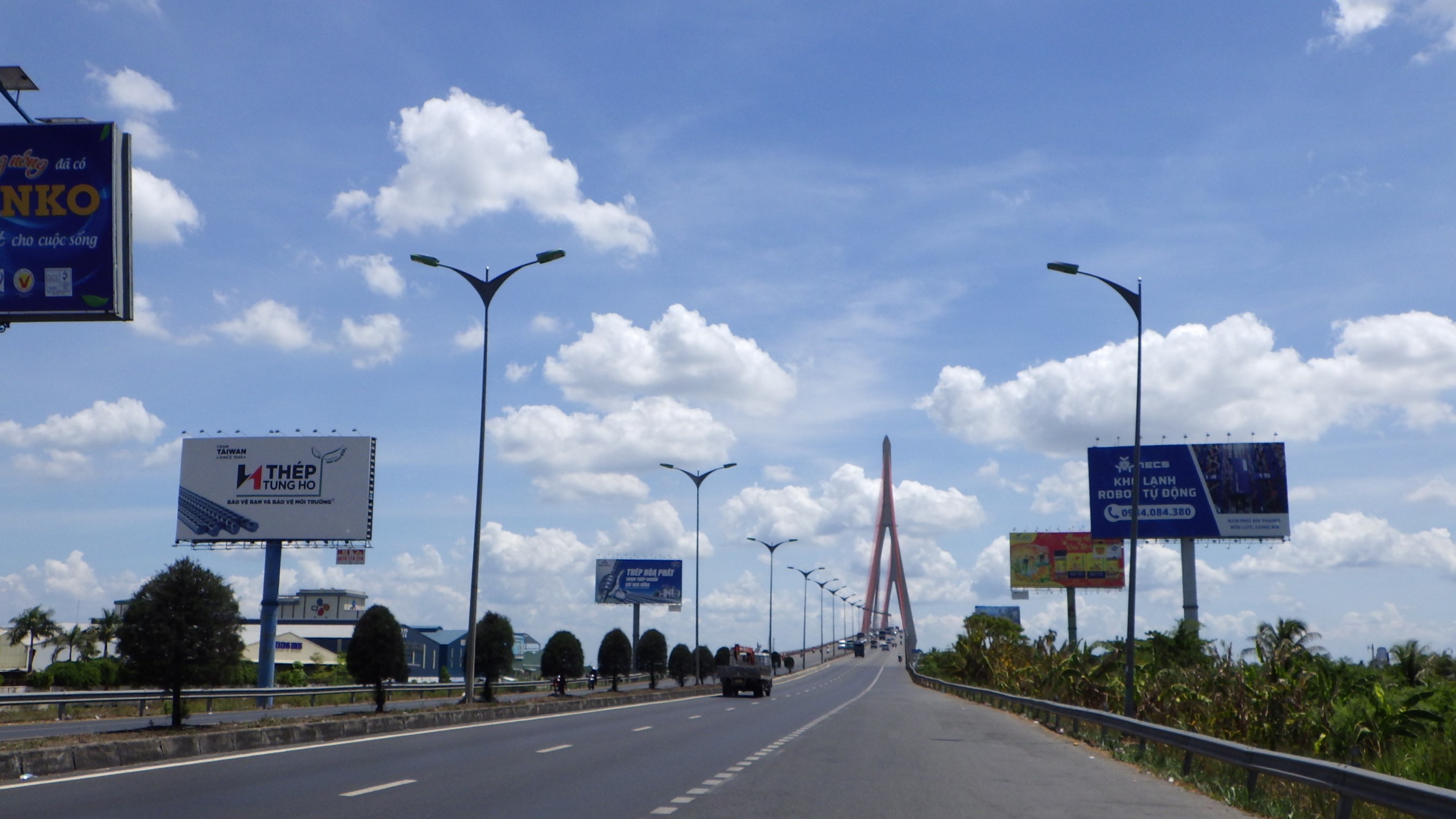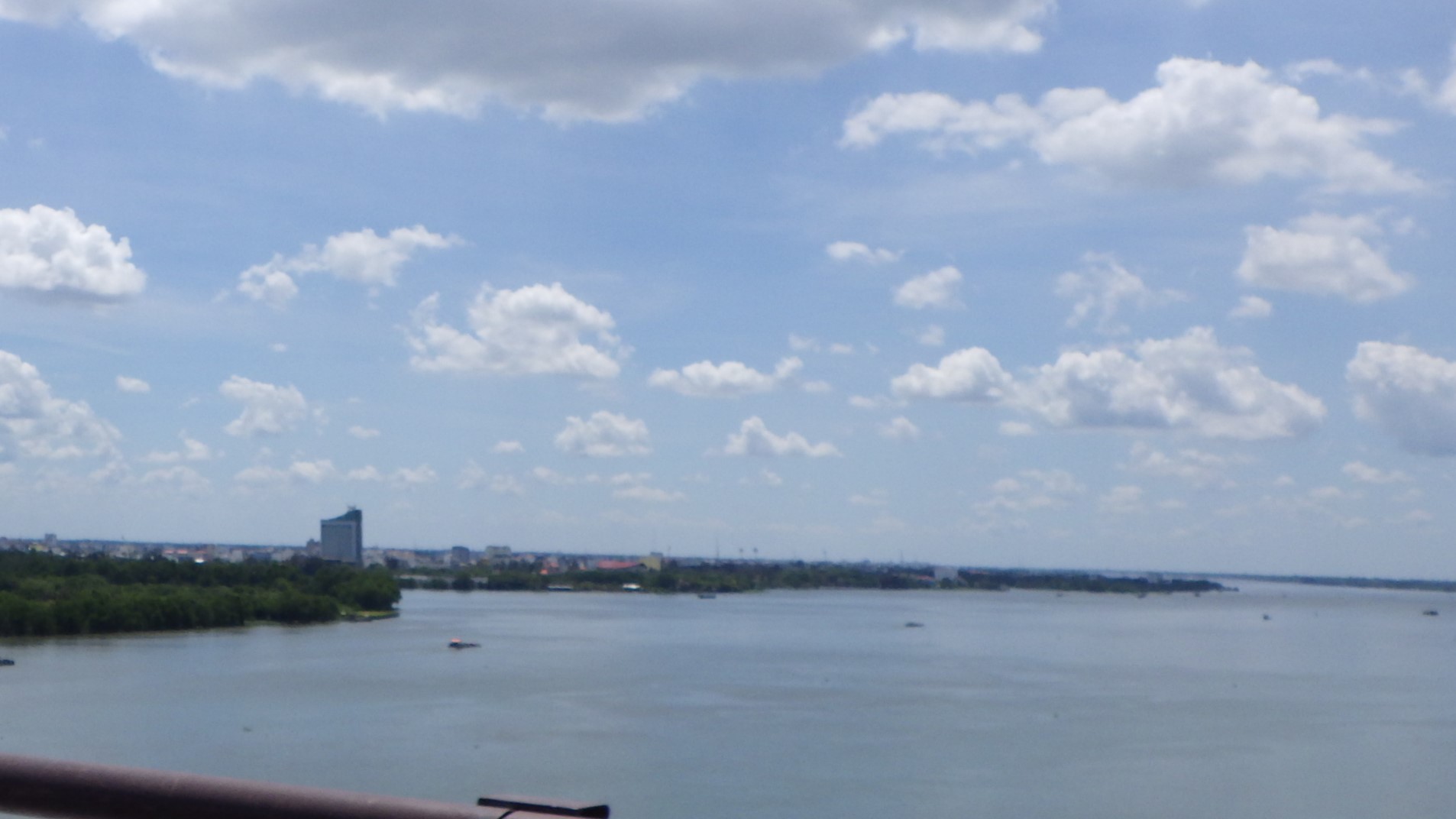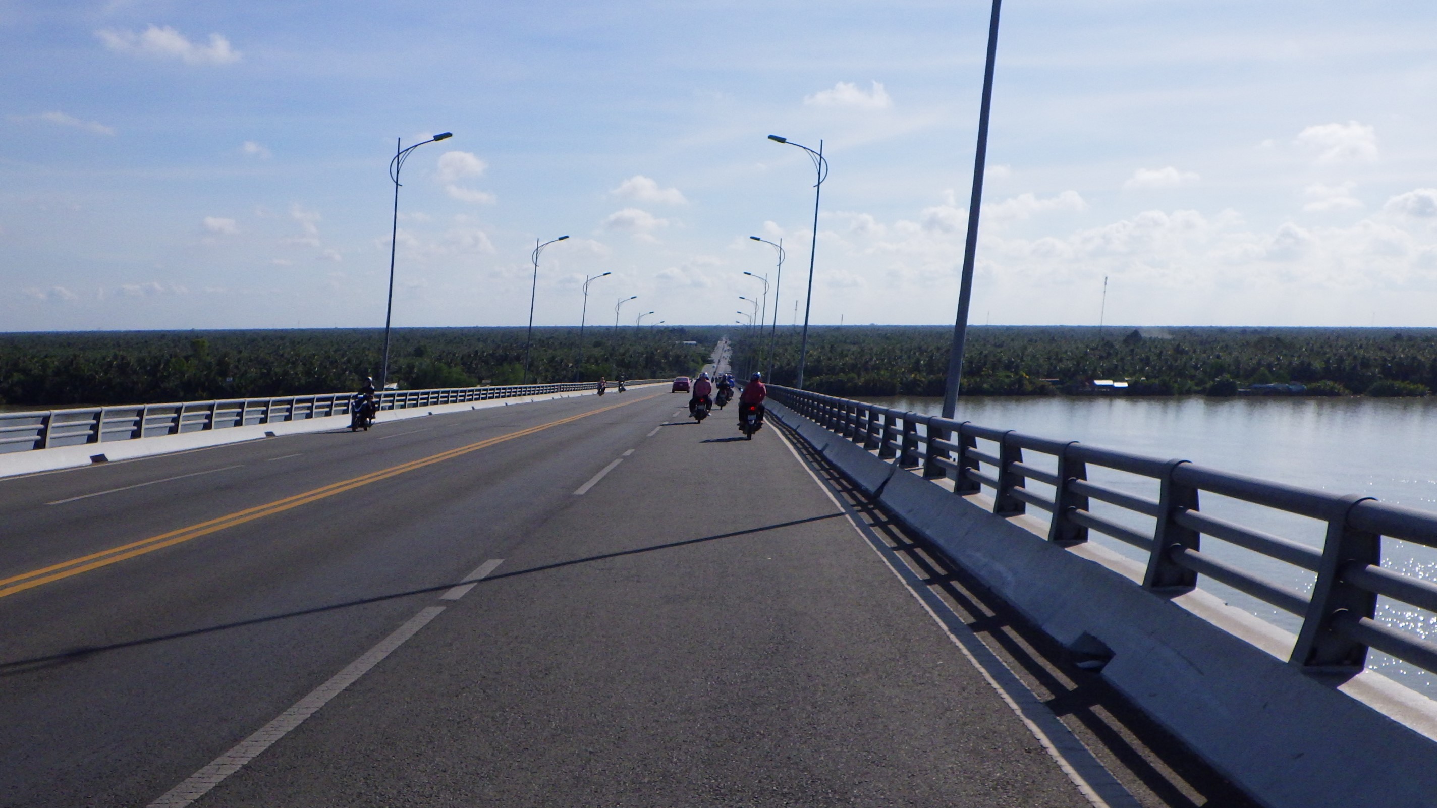 | メコンデルタの内陸部は変化の少ないところでした。ひたすらCan Thoを目指して走る。最後にSoc Trang~Tra Vinh間を船で渡ったHau川を巨大な橋で渡りCan Tho へ。 |