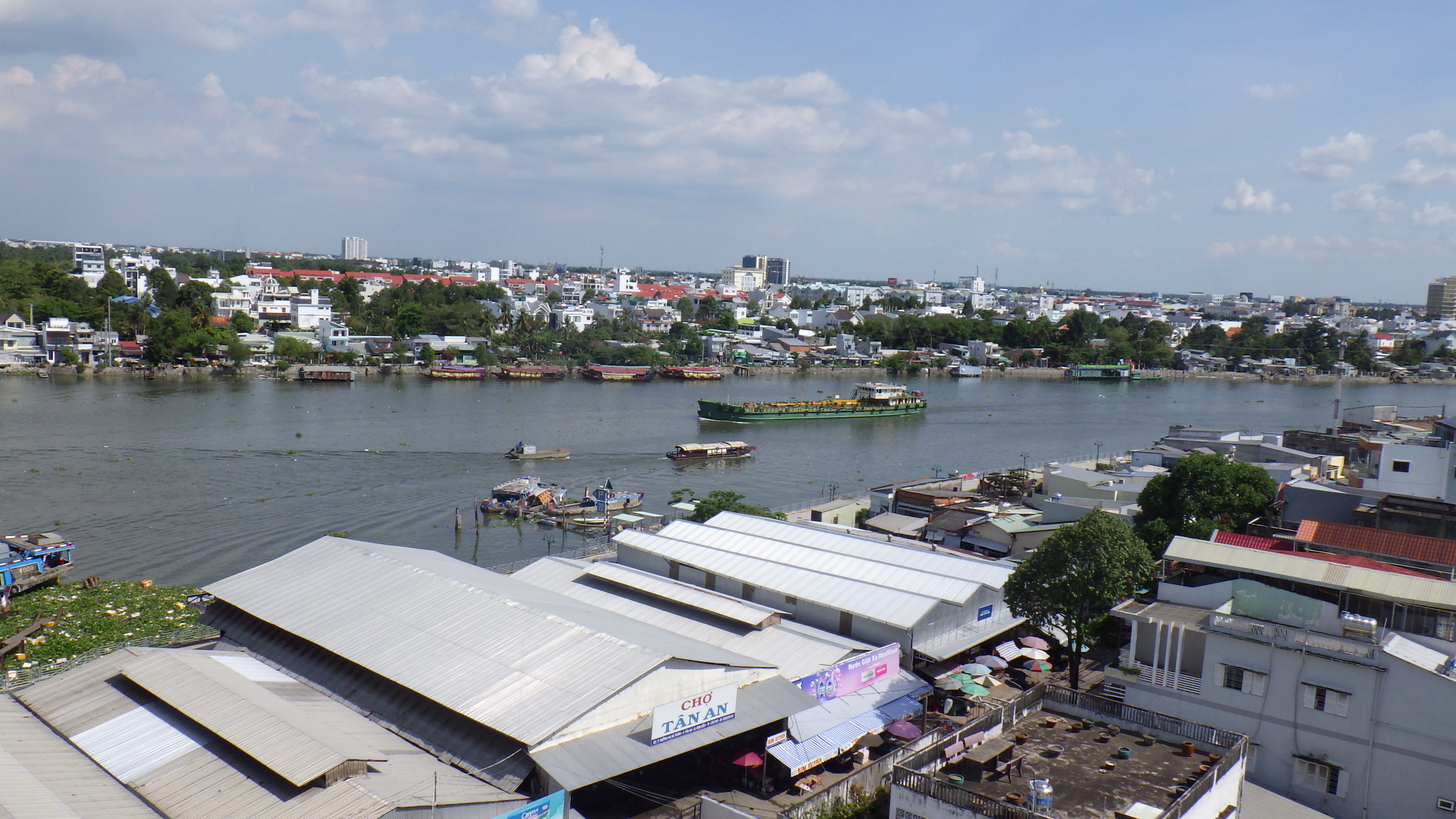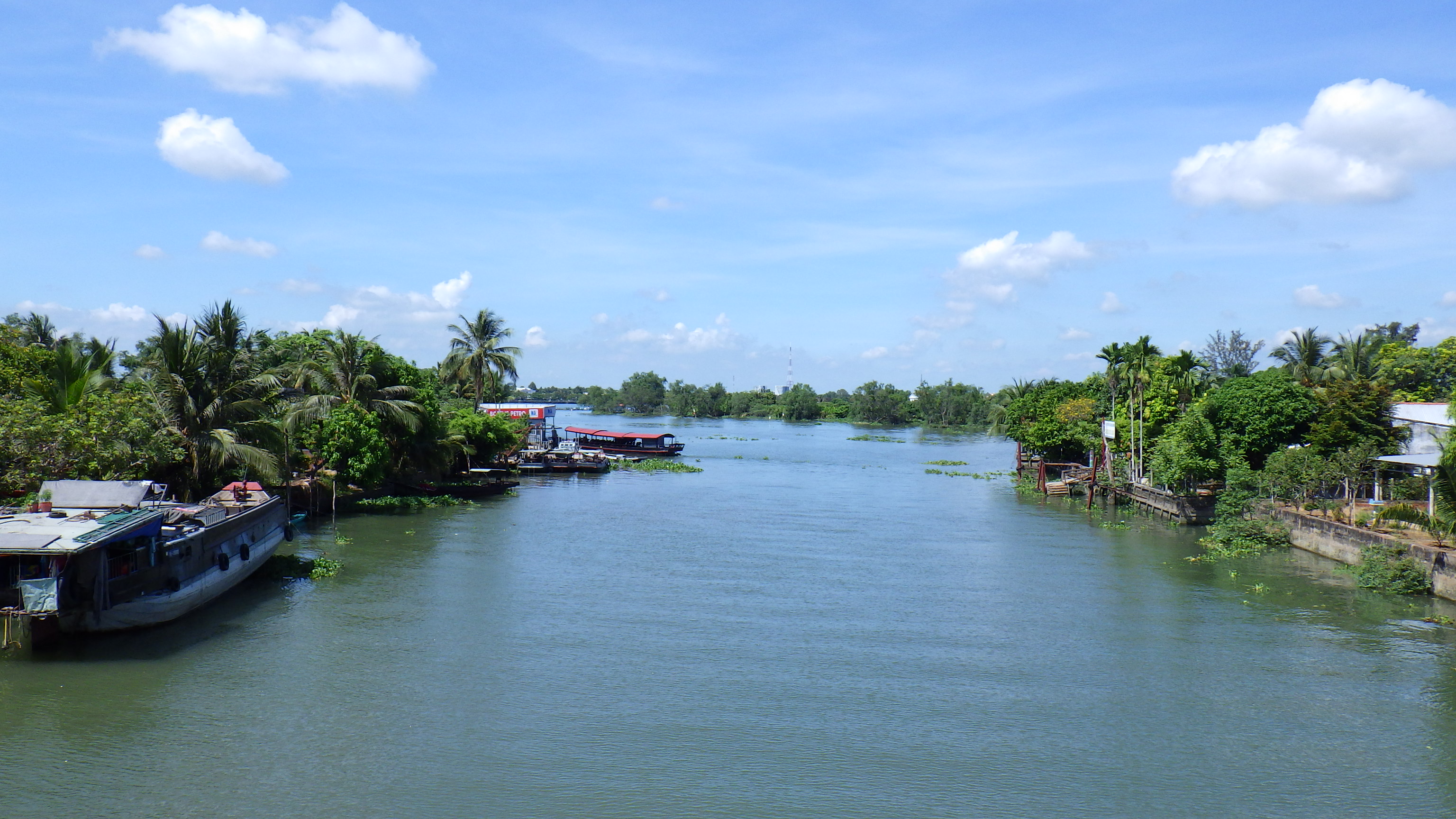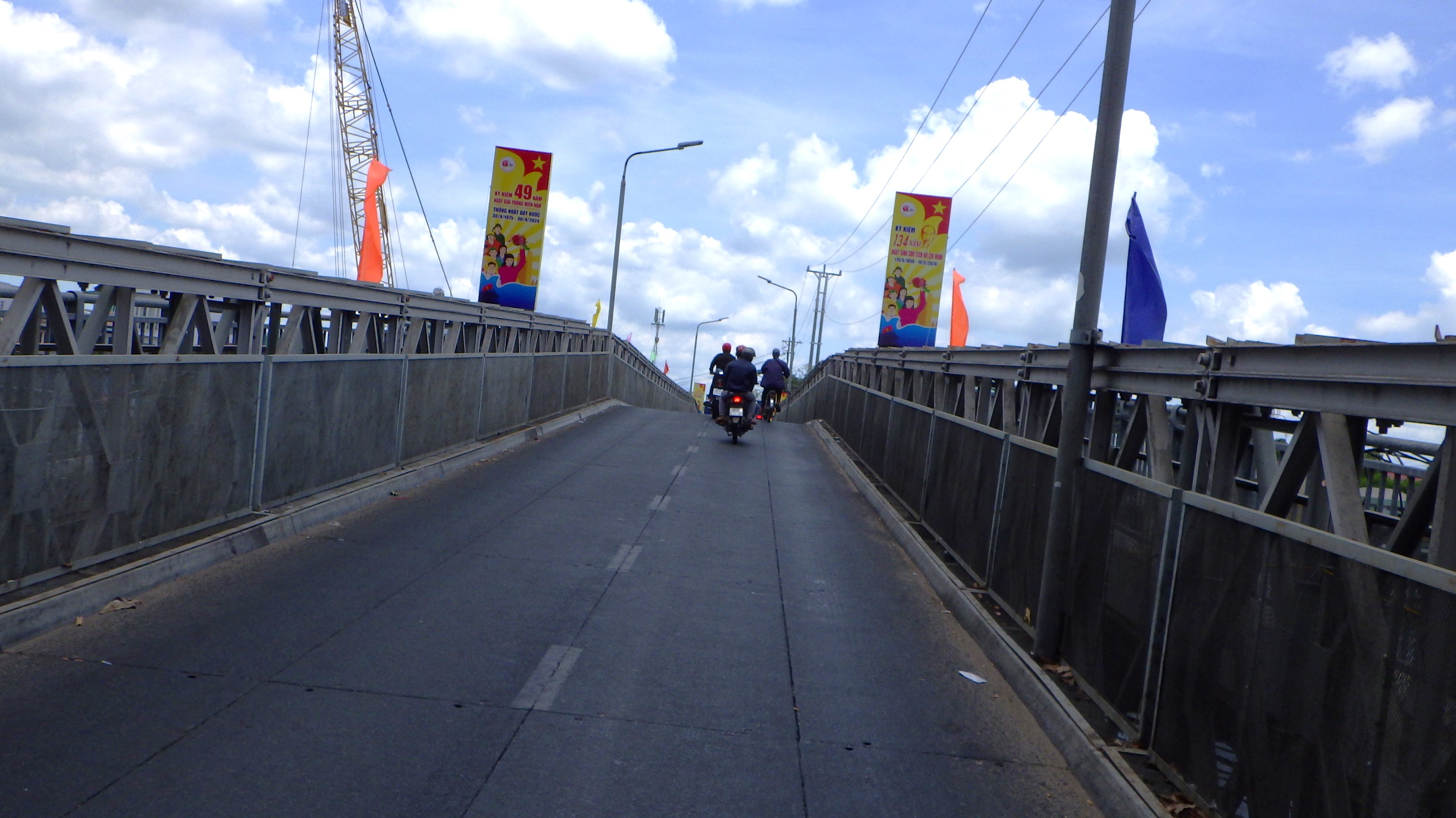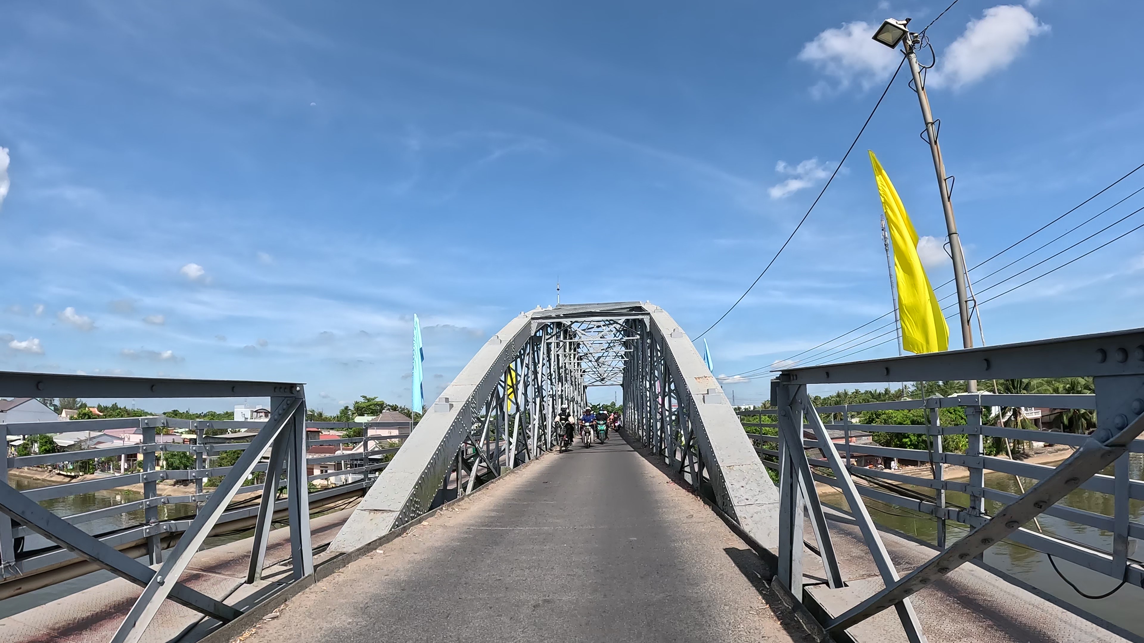 | メコンデルタの内陸部は変化の少ないところでした。ひたすらCan Thoを目指して走る。最後にSoc Trang~Tra Vinh間を船で渡ったHau川を巨大な橋で渡りCan Tho へ。 |