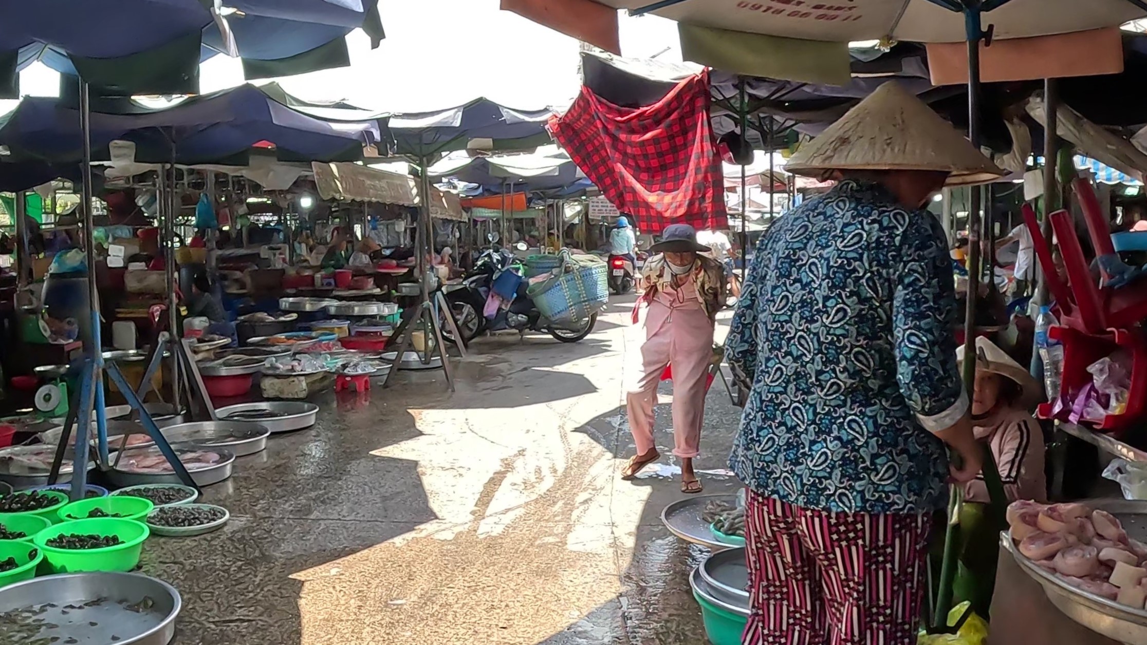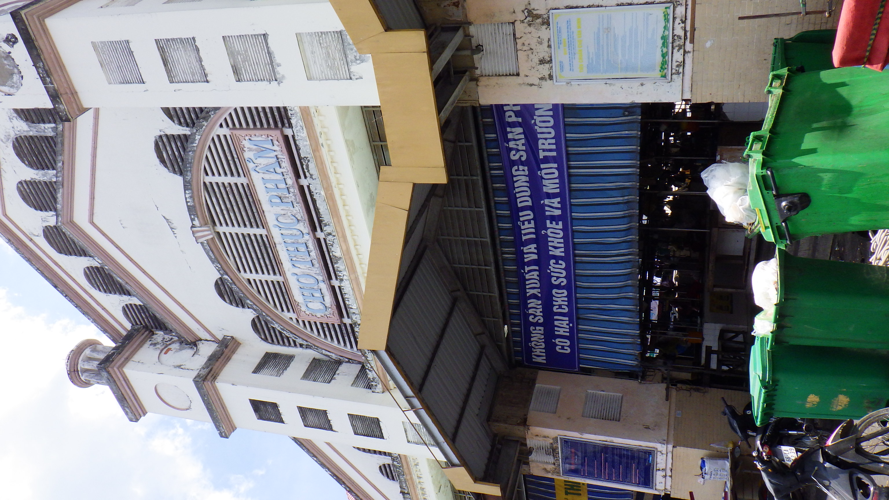| 川から直接荷揚げできるようになっている市場。テレビでみる東南アジアの市場そのものだ。橋を渡って市場に行く |
