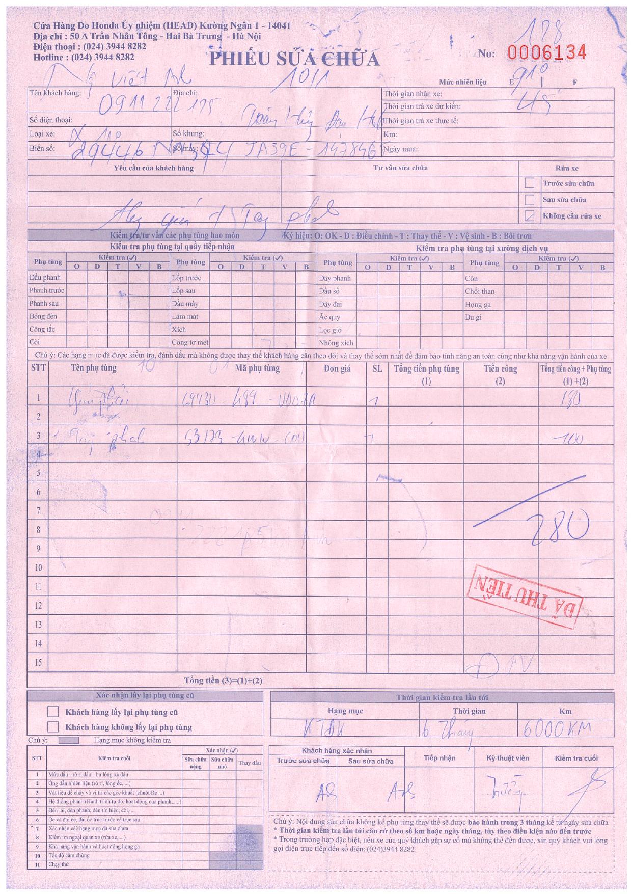 カウルの交換180,000vndとレバーの交換100,000vndで280,000vndだった。安いなあながち200,000vndも間違いではないのだろう。しかし事故の時に無くしたヘルメットのバイザー3500円これは戻ってこないぞ。 |