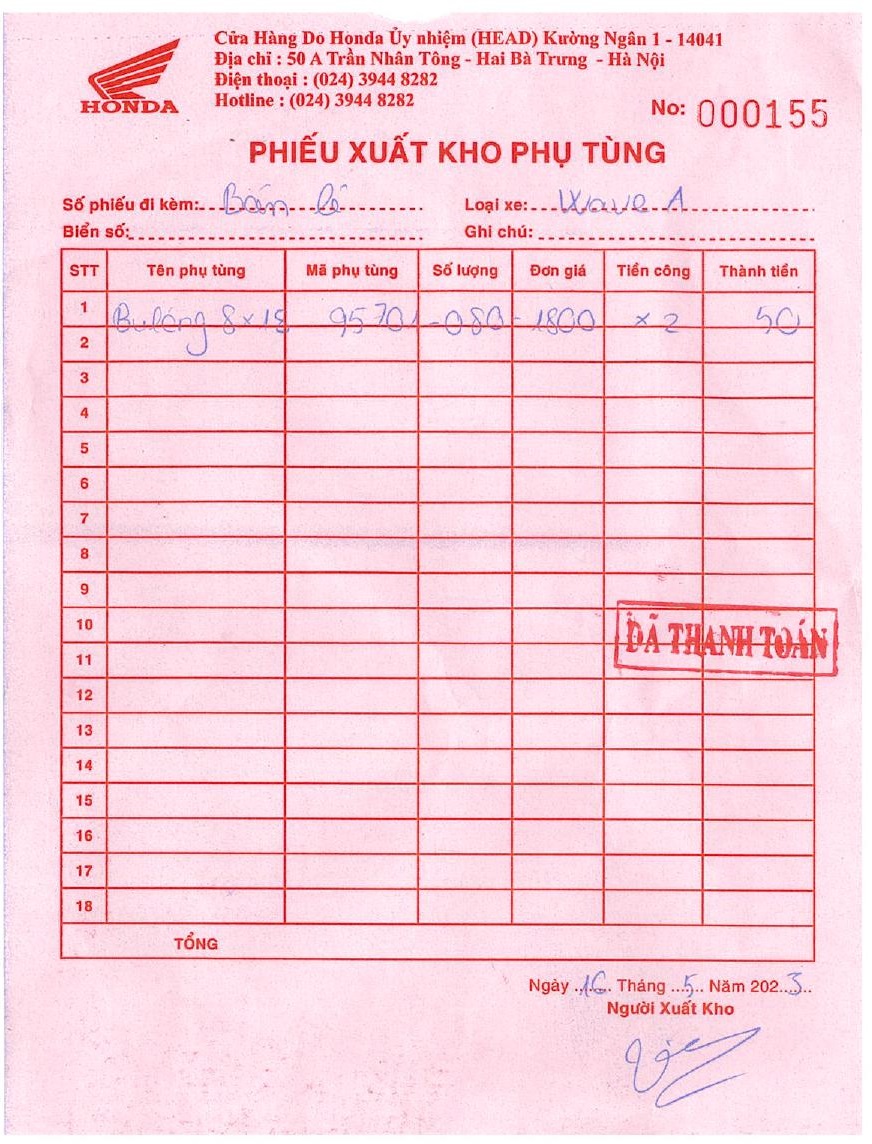 23.04.04 2020年7月に購入、2023年4月の時点で走行距離2500qだが、オイル交換することにした。 90,000VND=540円 |